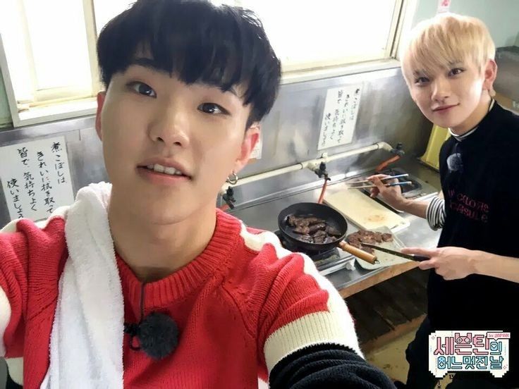 hoshi : anh đi làm đầu bếp với joshua hyung nè