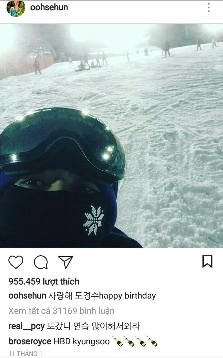 Và 11/1/2017 năm nay, Sehun đã post IG bức ảnh này với caption "Tôi yêu bạn. Do Kyungsoo happy birthday"