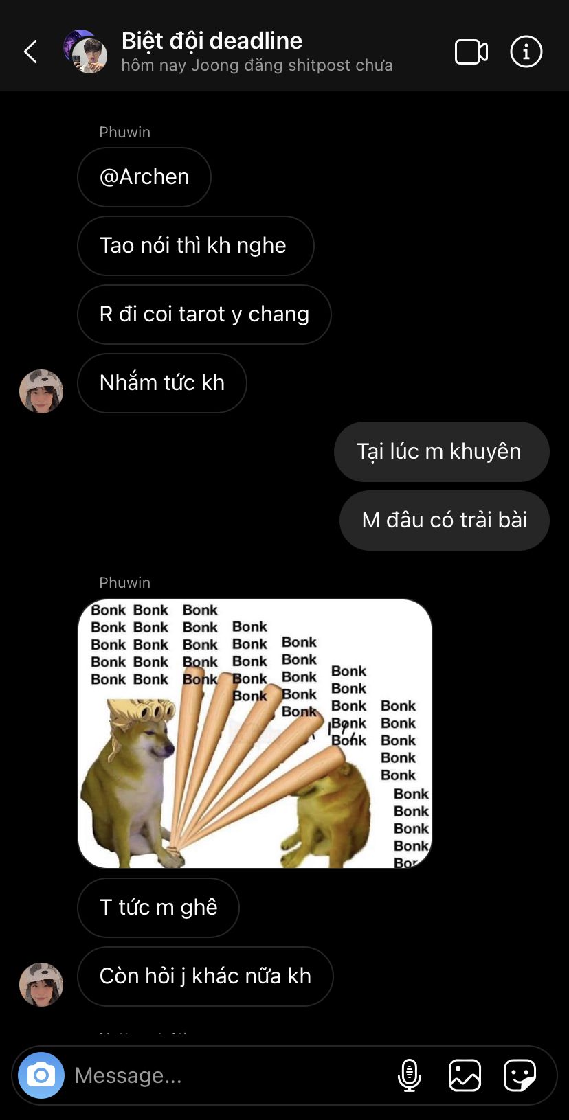 Pa thấy Dunk cứ nhìn vào điện thoại như chờ đợi tin nhắn từ ai đó, anh ngó thử thì thấy màn hình tin nhắn của cậu với Joong.