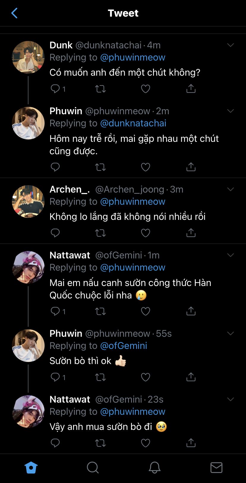 "Anh Phuwin đang tìm người ở ghép, em cũng có nói với Phuwin về chuyện condo của mình rồi. Phuwin cũng ok á anh."