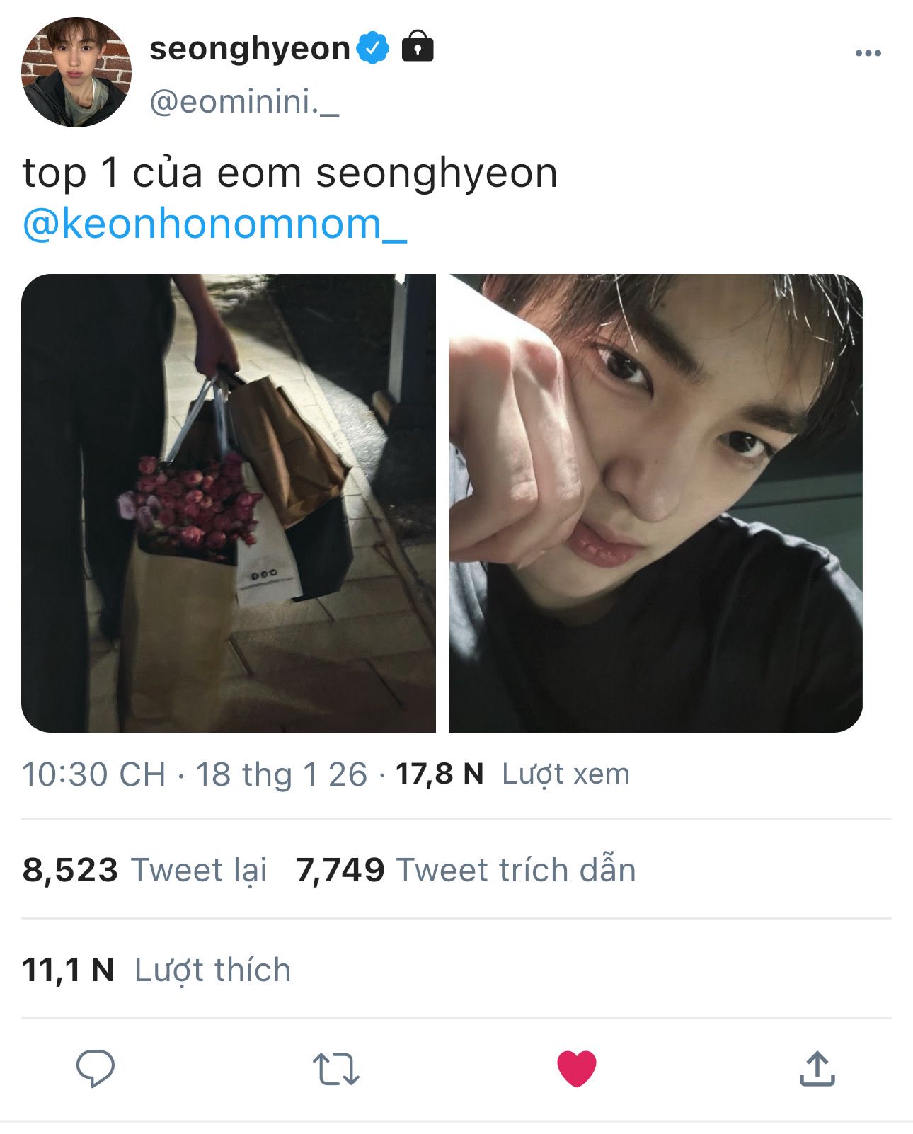seonghyeon vừa nghe thấy keonho nhắc đến hai từ " người yêu " thì liền bất ngờ đến mức mọi thứ xung quanh như đang ong lên trong tai em.