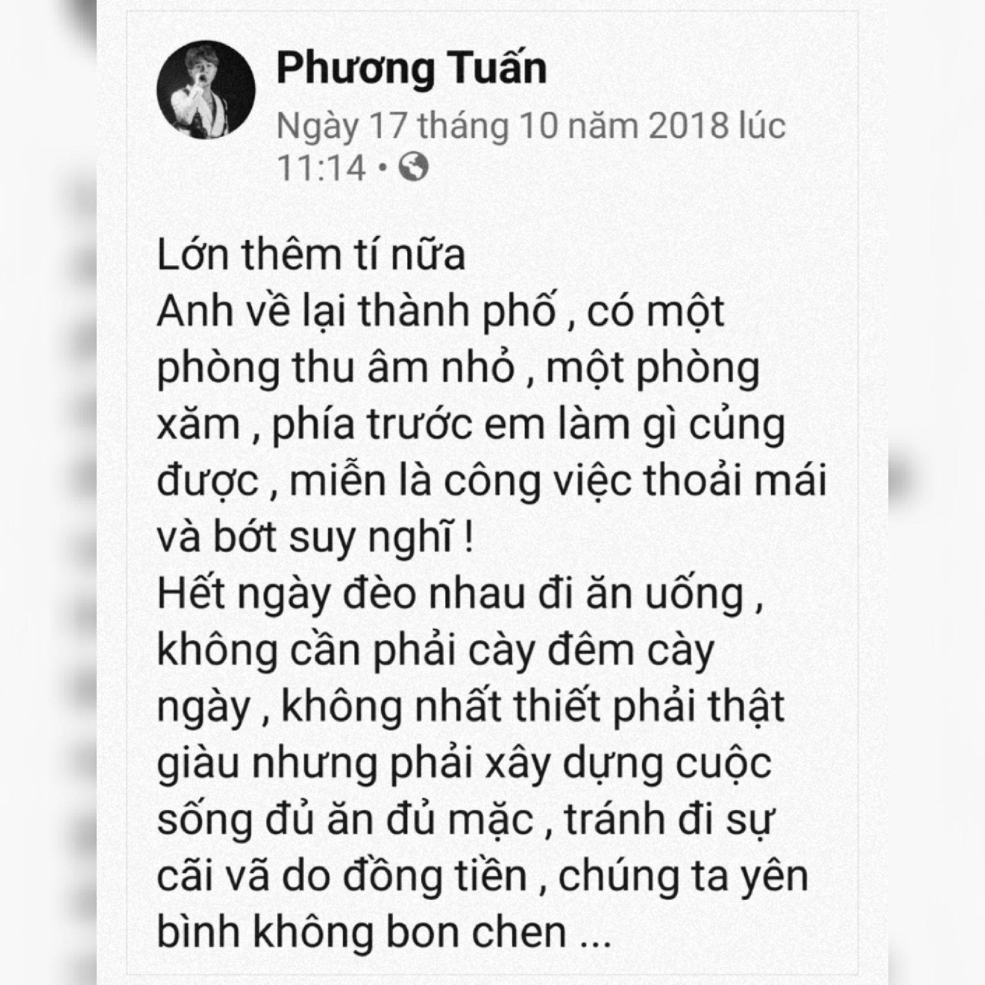 Phương Tuấn sau khi kết hôn tuyên bố giải nghệ, rời khỏi ICM Entertainment. Trở về thực hiện ước mơ ngày xưa mở một phòng thu âm, và một tiệm xăm nho nhỏ. Cuộc sống không quá khá giả nhưng cũng gọi là đủ ăn đủ mặc!