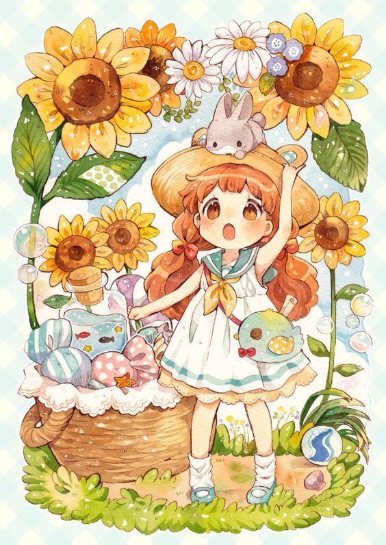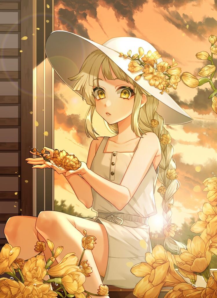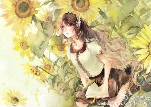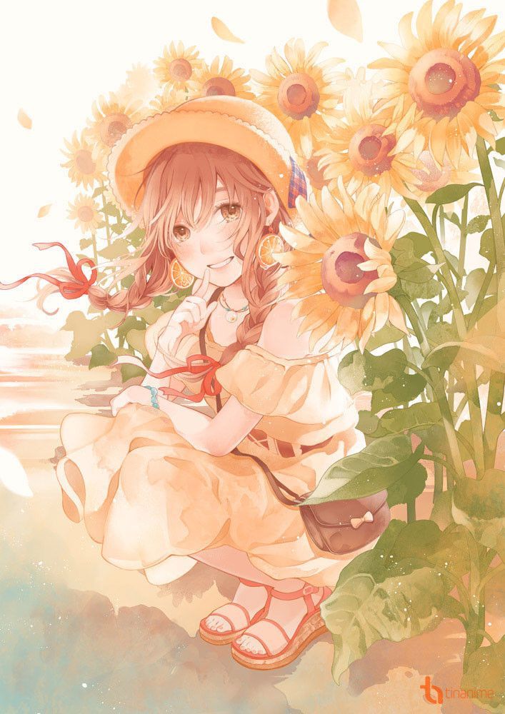 Anime Girl Với Hoa Hướng Dương