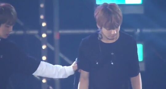 Seokjin là người đứng bên phải JK :)) lúc đầu Jin có đẩy JK qua phía JM sau JK cứ ngỡ ông anh này đang trêu mình cái gì đó nên mặt đực ra ._.