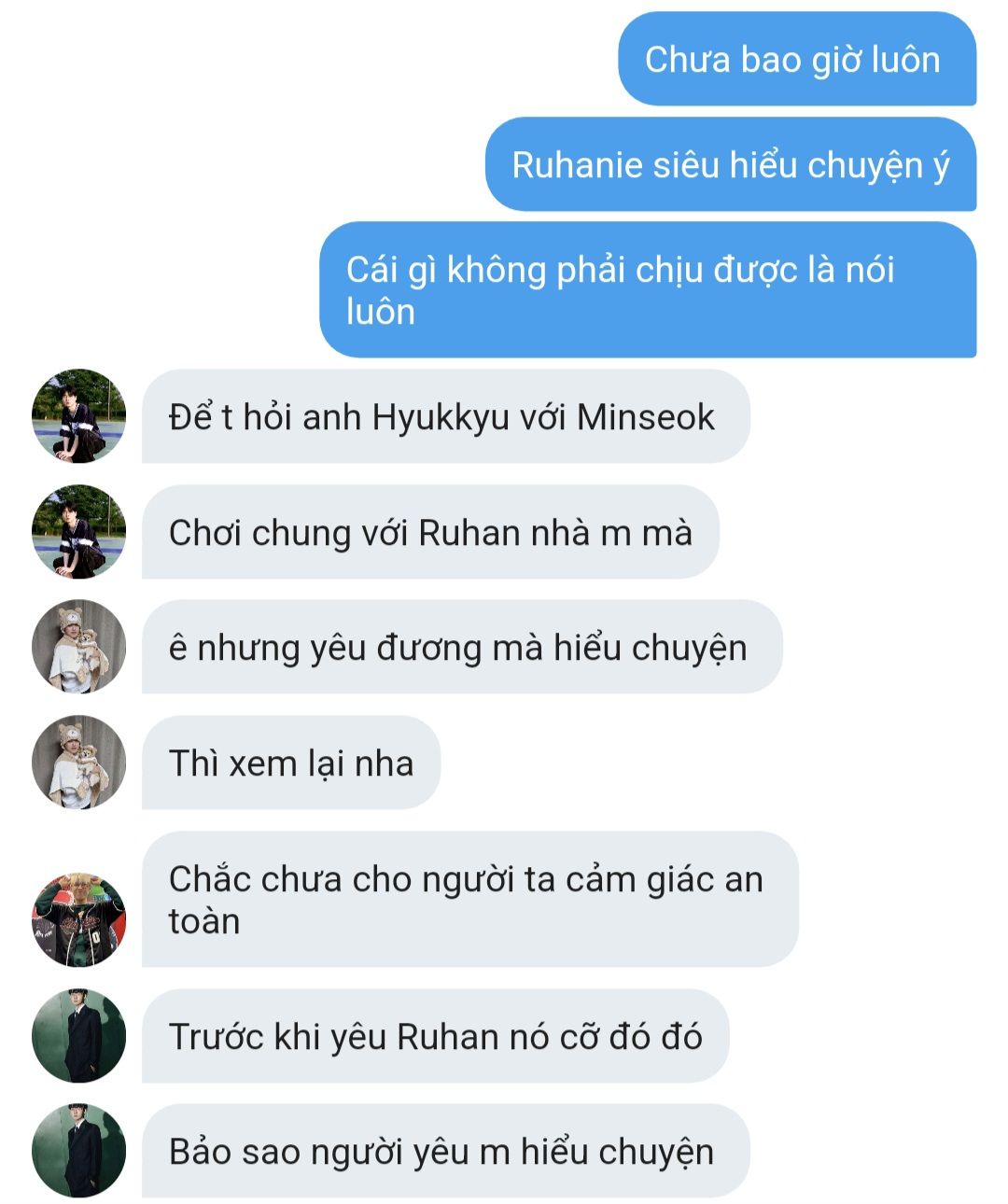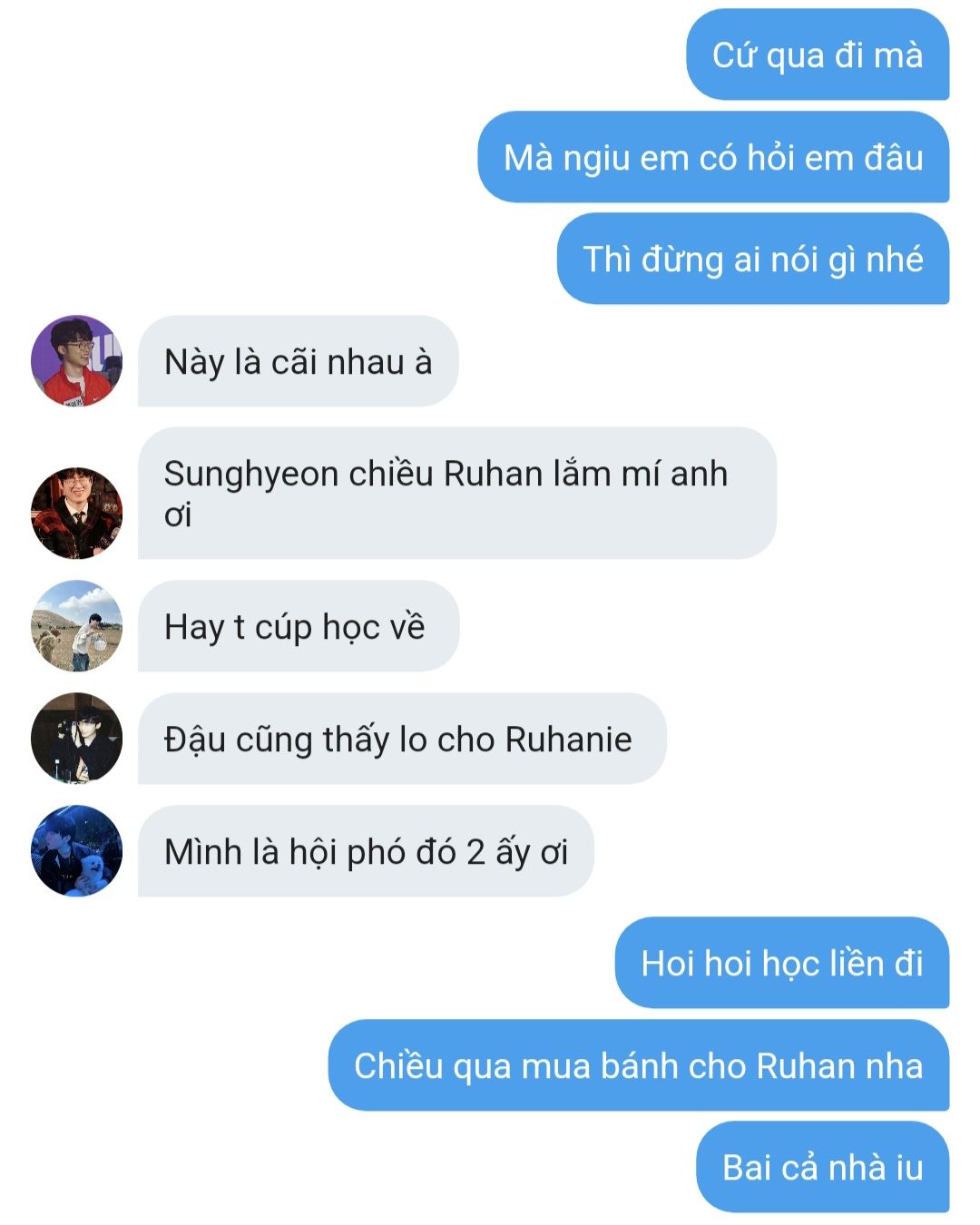 Mọi thứ cứ loạn cào cào hết lên, mỗi người một câu mỗi người một cái mỏ hoạt động hết công suất suất. Park Ruhan mà không cản là giờ tông ti nhà người ta anh Sanghyeok cũng tìm ra luôn rồi.