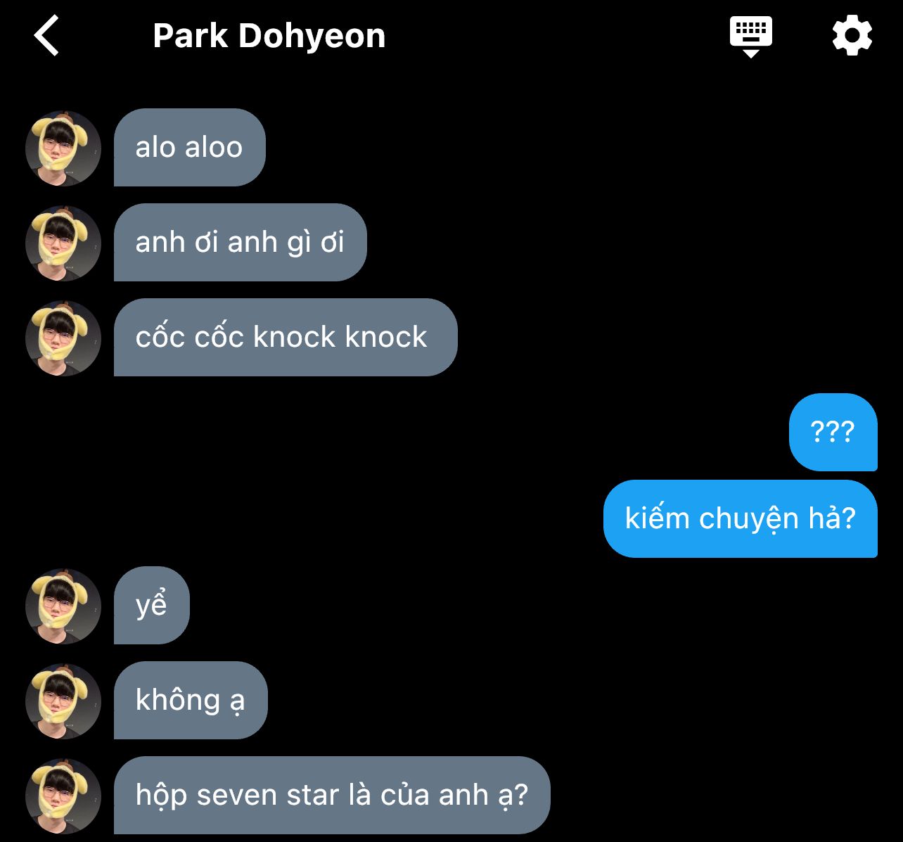 cậu đứng một lúc thì nhìn thấy bao thuốc hiệu 'seven stars' của nhật rơi dưới bậc thang. park dohyeon nhặt lên tính vứt, nhưng nghĩ đến việc lấy đây làm cớ gặp mặt chủ nhân nó cũng không tồi chút nào. đương nhiên đêm đó cậu về triển ngay kế hoạch.