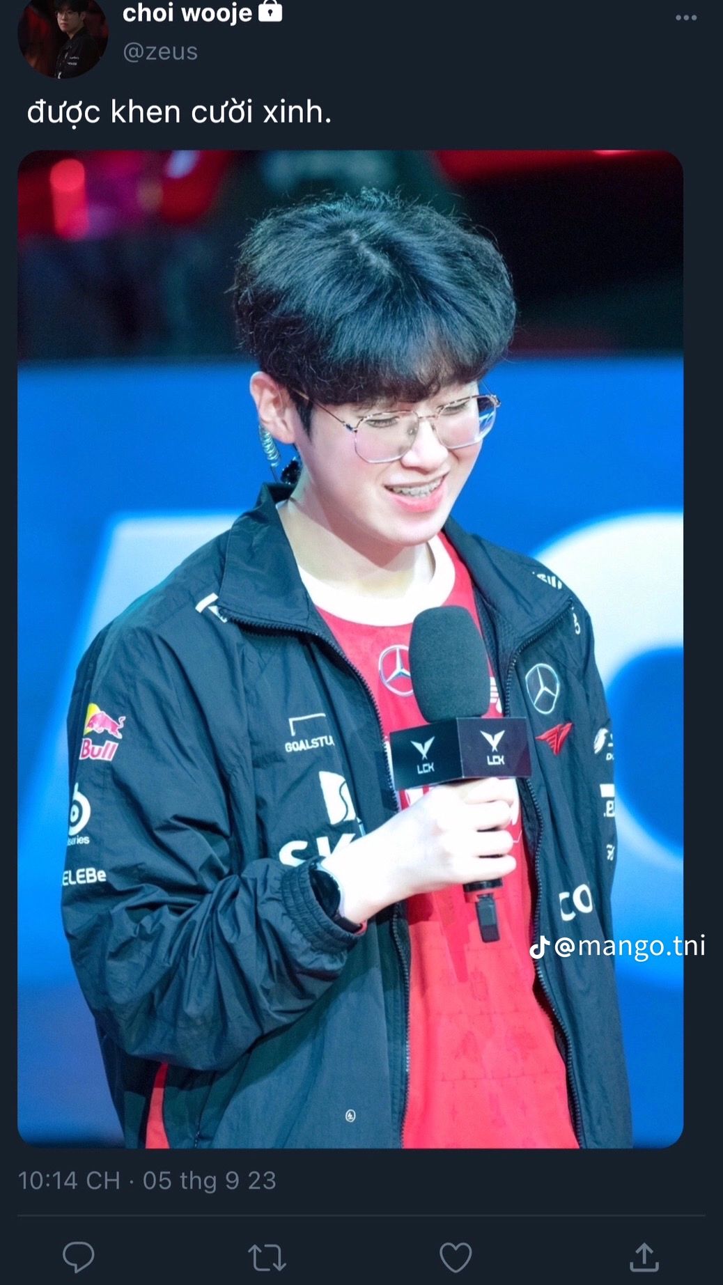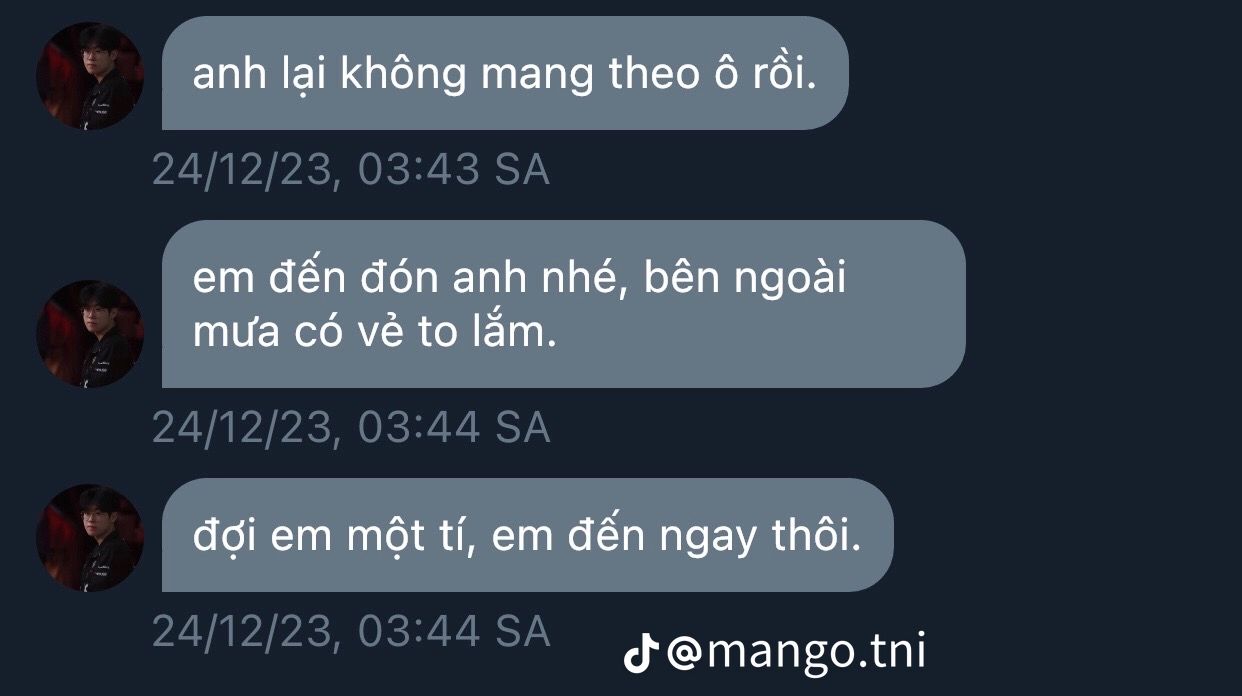 4. Anh này, hôm nay em dọn lại album ảnh thì thấy tấm ảnh này nè. Đẹp ha anh, này là lúc anh lên nhận giải nè. Em chả nhớ mình lưu vào lúc nào, nhờ ai chụp luôn á. Nhưng nhìn tấm này em với anh đẹp ha, nhìn đẹp đôi quá trời. Anh ơi, Wooje nhớ anh rồi. Anh đi đâu sao lâu quá vậy, mau mau về với em. Em nhớ anh.