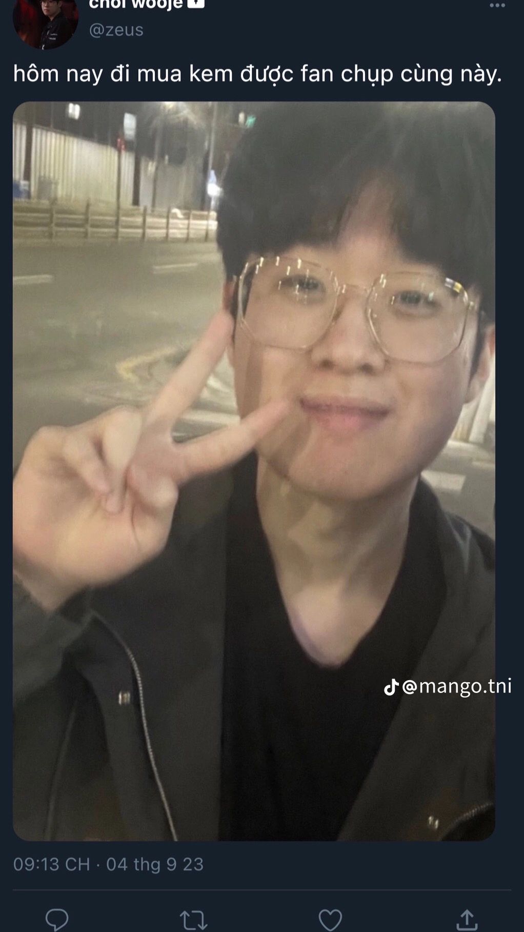 Hôm nay Wooje lại nhớ anh. Nhớ anh đến mức không thể nào ngủ được. Thế là em ra ngoài đi bộ cho khuây khỏa, mong tí nữa mệt về sẽ ngủ được. Hôm nay bầu trời đêm đẹp lắm, còn có trăng tròn. Wooje lại nhớ anh, liền lấy điện thoại ra chụp một bức ảnh gửi cho anh xem. Thì có vài bạn fan sau lưng nhận ra em, thế là liền xin chụp ảnh. Em vui vẻ đồng ý, dù sao cũng chỉ là một bức ảnh mà. Tiện đây em cũng định chụp, tí có gì về khoe với anh. Anh thấy em có đẹp không.
