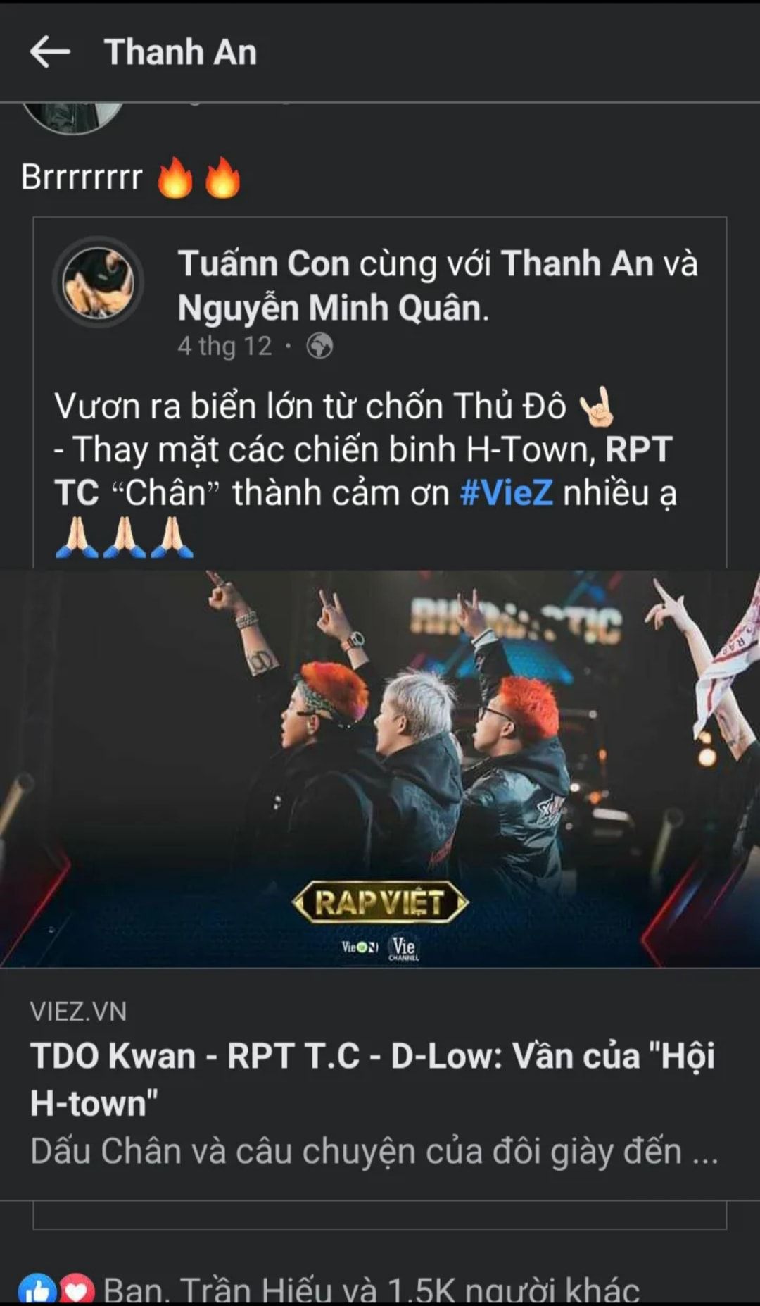 Sau này thì em An đã đạt vài chục nghìn react một bài viết, chúng tôi không lục được anh Hiếu nữa =)))