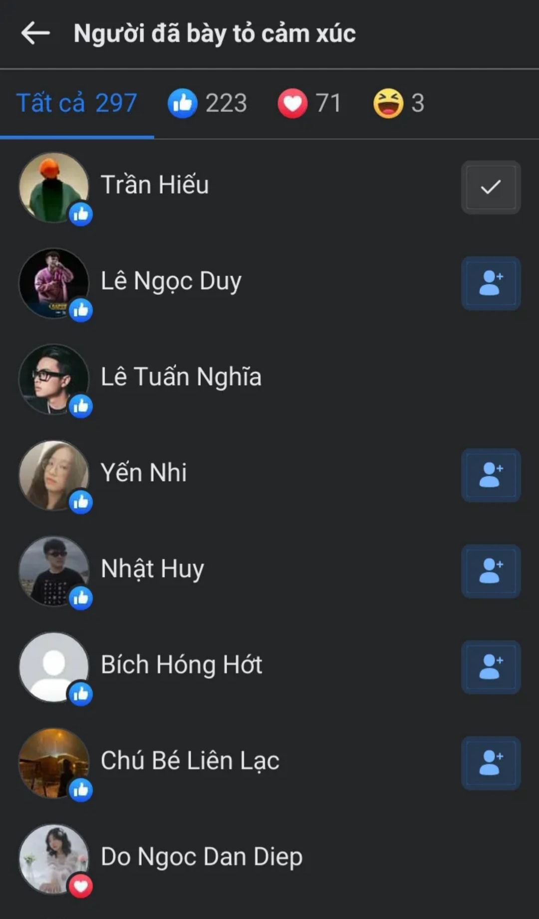 Anh ta thả like toàn bộ Đạt Lê, Ngô Cao Hoàng Việt, Đặng Thành Hưng, Hồ Ân, Typh Phạm, thầy Bảy Vương Ngọc Tân,... =))))