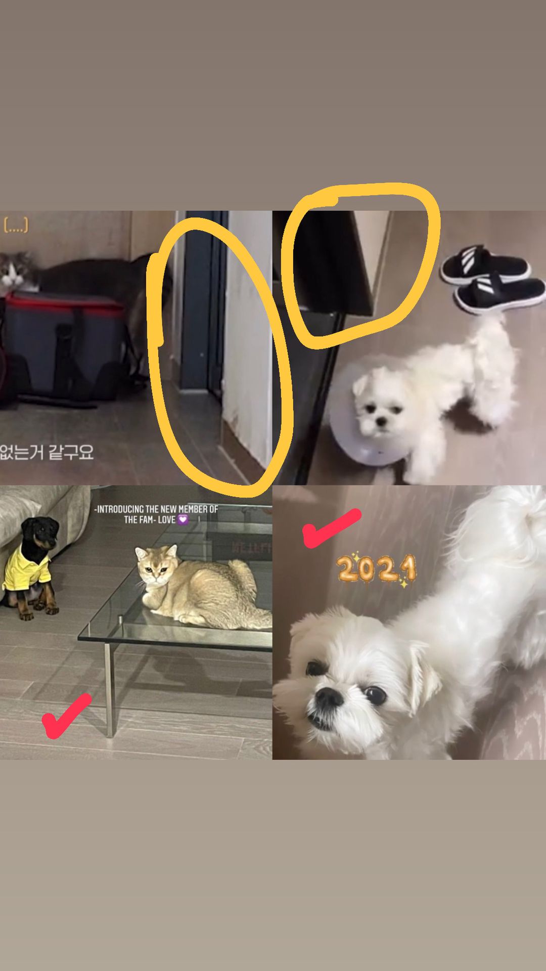 Vào đầu tháng 1, khoảng ngày 1 hoặc ngày 2, Jisoo đăng ảnh Dalgom với sàn gỗ giống với căn hộ mới của Lisa, cap là 2021, chỉ vài ngày sau, khoảng ngày 5 hoặc 6, Jisoo lại tiếp tục up story cùng Dalgom sau khi bị Dalgom cắn nên cô ấy quyết định trêu chọc nó, dòng cap "sự trả thù", ngoài sàn gỗ và góc tường, có thể thấy chiếc thảm trong story của Jisoo có chất liệu tương đồng với thảm của Lisa.