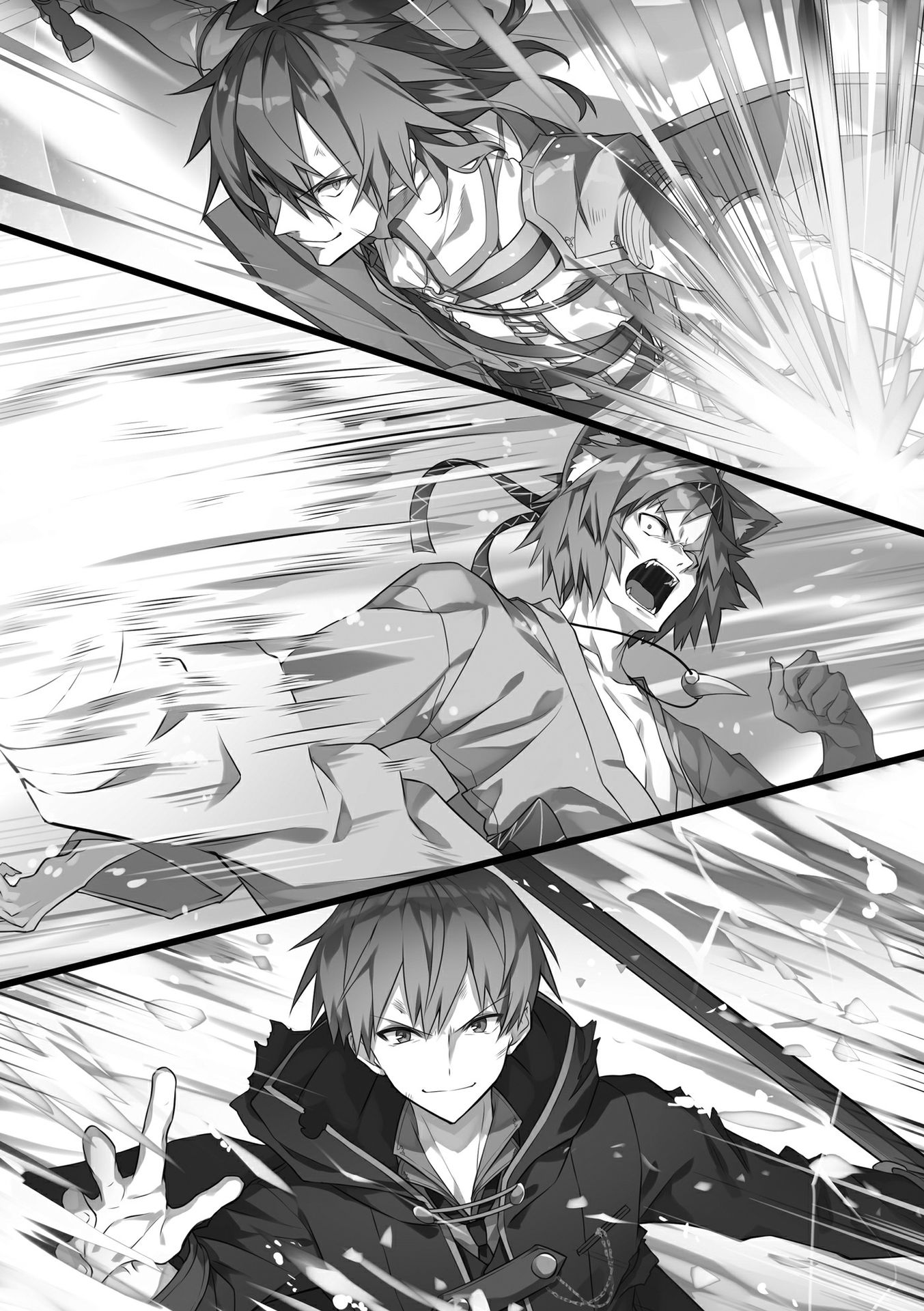 Hai người đàn ông bước vào—các sứ giả từ Atlas và Bazel. Chúng chớp mắt ngạc nhiên khi nhìn thấy Nee-sama và run sợ trước ánh mắt lạnh lùng của tất cả mọi người có mặt. Mặc dù vậy, một người hắng giọng và nói, "Xin lỗi vì đã tự ý xông vào."