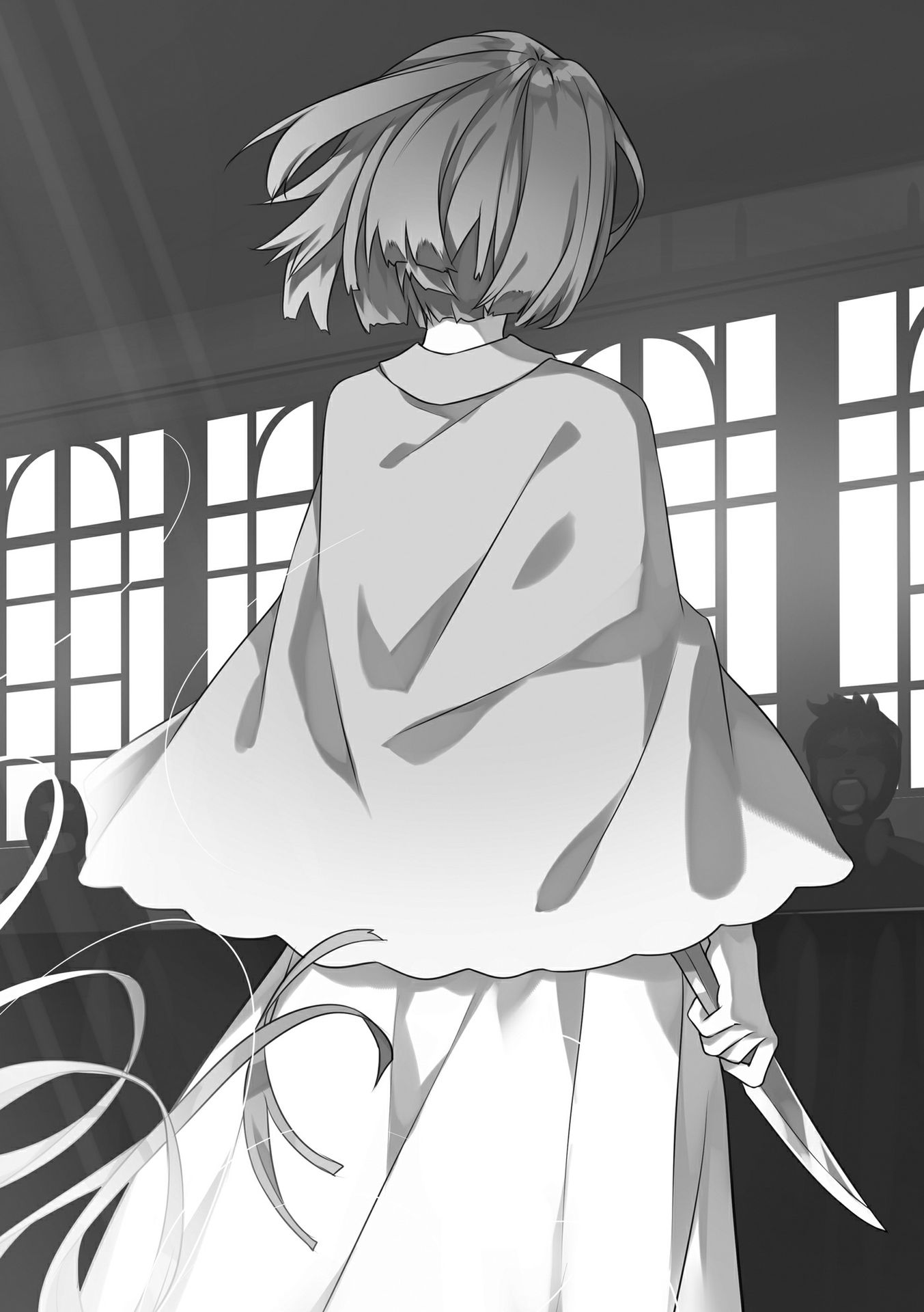 Giữa sự hỗn loạn, Gil từ từ ngẩng đầu lên, chuyển cây kích sang tay phải và rút dao găm bằng tay trái. Ánh sáng tràn ra từ vũ khí, tạo thành vô số kết giới hình bát giác sáng chói. Đó là cùng một con dao mà Gerard đã từng mang theo—con dao thấm đẫm tàn dư của Đại Ma Pháp Toả Quang Thuẫn!