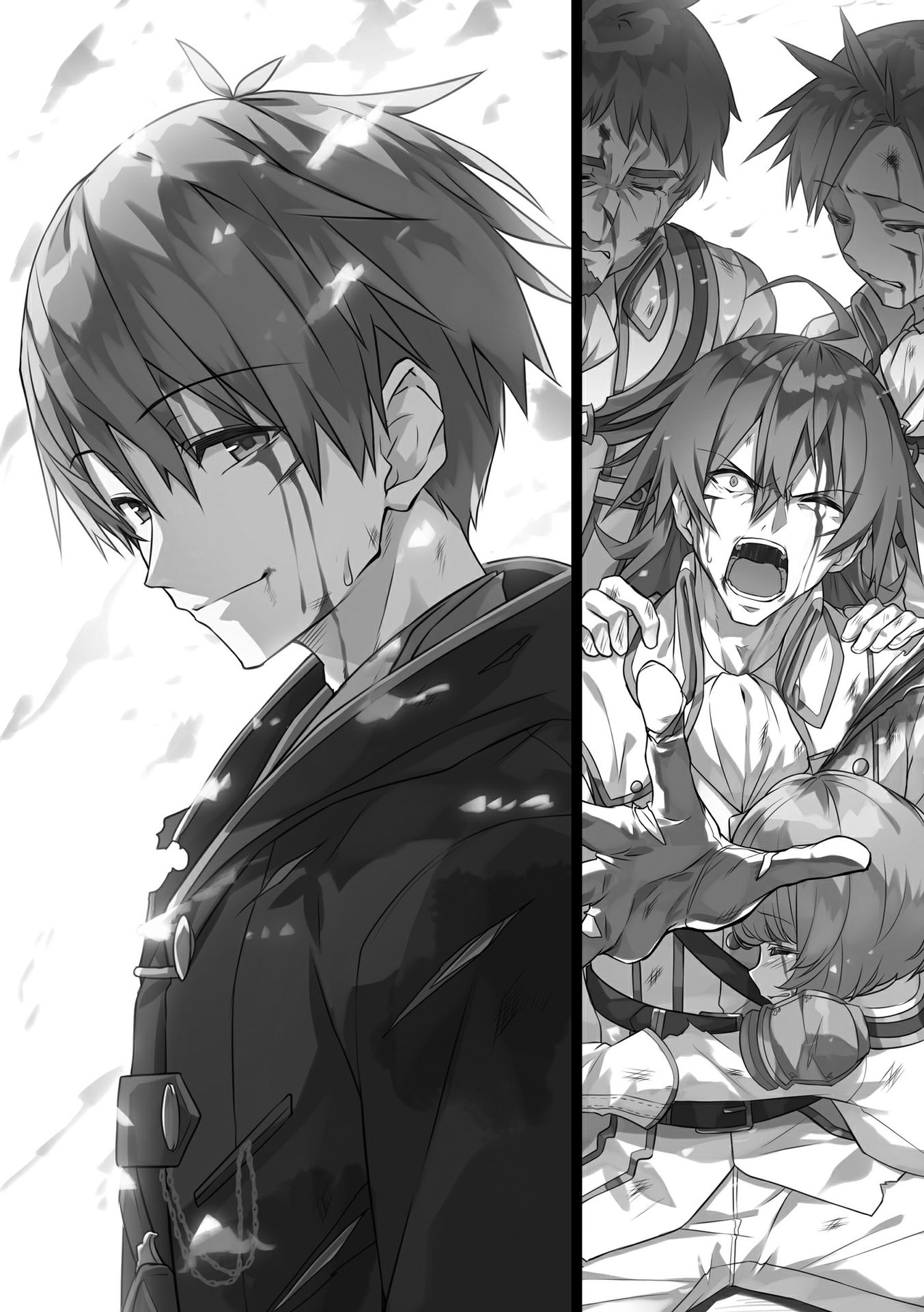 "Chúng ta có những cựu tộc trưởng đi cùng!" Sui trừng mắt nhìn tôi, túm lấy cổ áo tôi và gầm gừ, "Cậu cũng gan đấy, Allen. Làm trò điên rồ như thế có thể—" Rồi, sắc mặt cậu biến mất và hắn hoảng loạn hét lớn. "C-Cậu bị thương hết rồi! Cậu đã chiến đấu như thế này sao?! M-Mang đến một phục hồi sư, nhanh lên! Và một cái ghế nữa! Trời ơi, cậu chảy máu khắp người rồi..."
