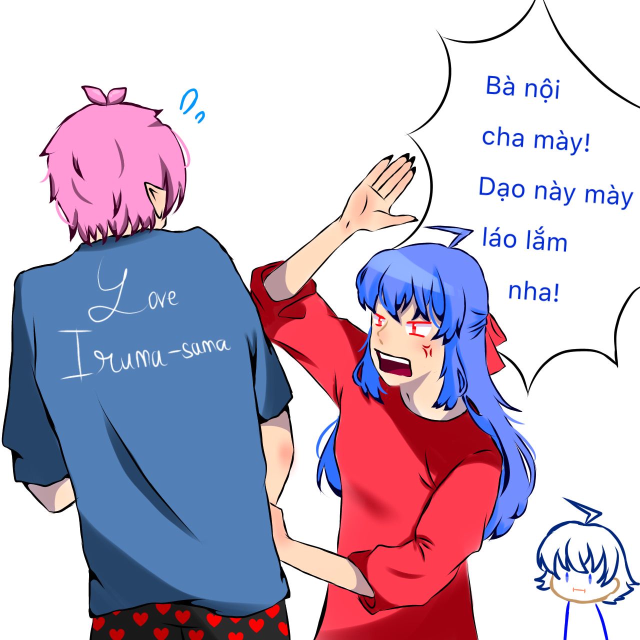 Iruma:"Tớ xin lỗi cậu và mọi người...vì thời gian qua tớ đã lừa dối các cậu! Tớ xin lỗi....vì tớ sợ khi tớ nói ra sự thật thì mọi người sẽ ghét bỏ tớ!" cậu nói