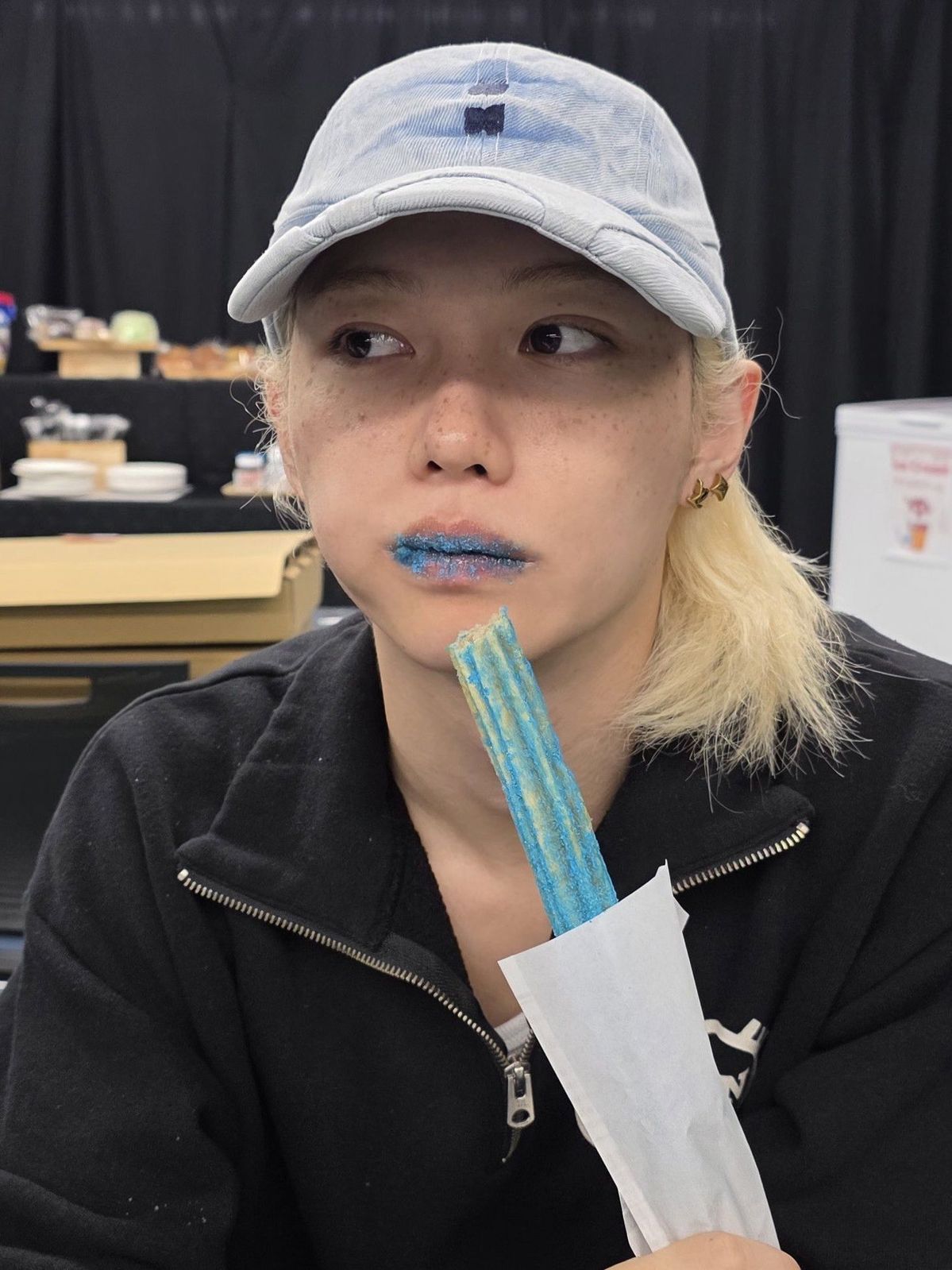 đang hốc bánh trong cửa hàng tiện lợi á