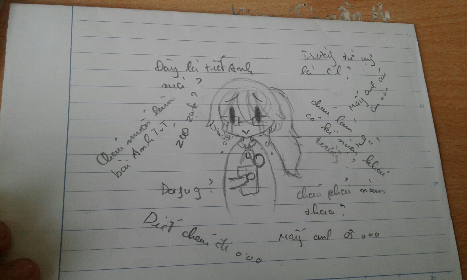 Đang hí hửng lôi sách Anh ra làm, cô phang cho câu: "Lấy giấy ra kiểm tra 15p nhanh lên!"
