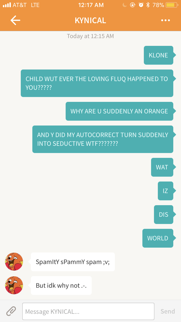 And I was gonna say suddenly an orange instead of seductive an orange buh okay Autocorrect :v
