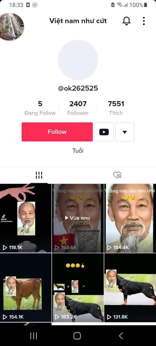 Một trường hợp chuyên đăng tải clip và video xúc phạm Lãnh tụ Hồ Chí Minh vĩ đại
