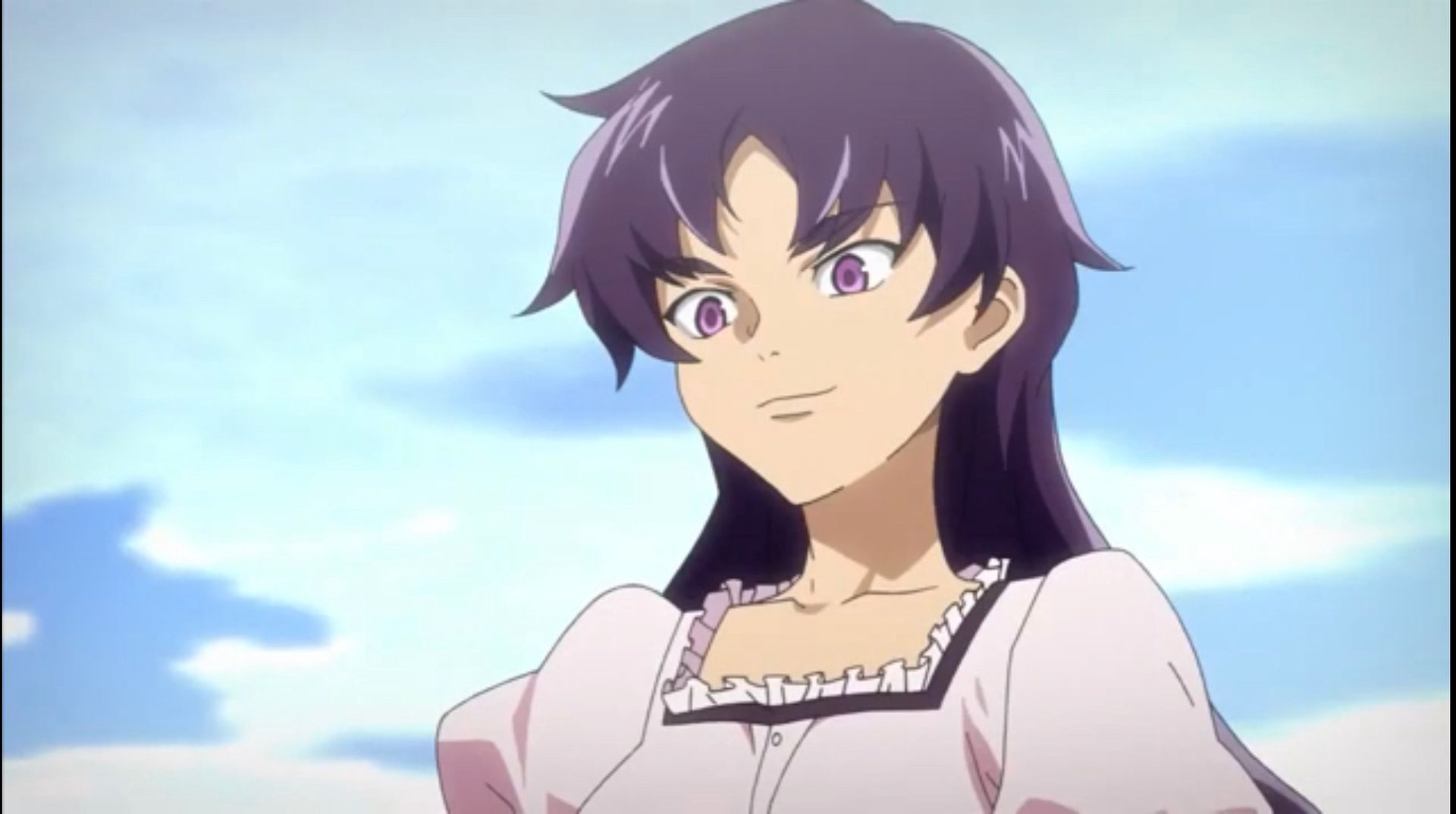 She was wearing a pinkish purple shirt, jeans and had long purple hair, but her eyes, were like amethysts