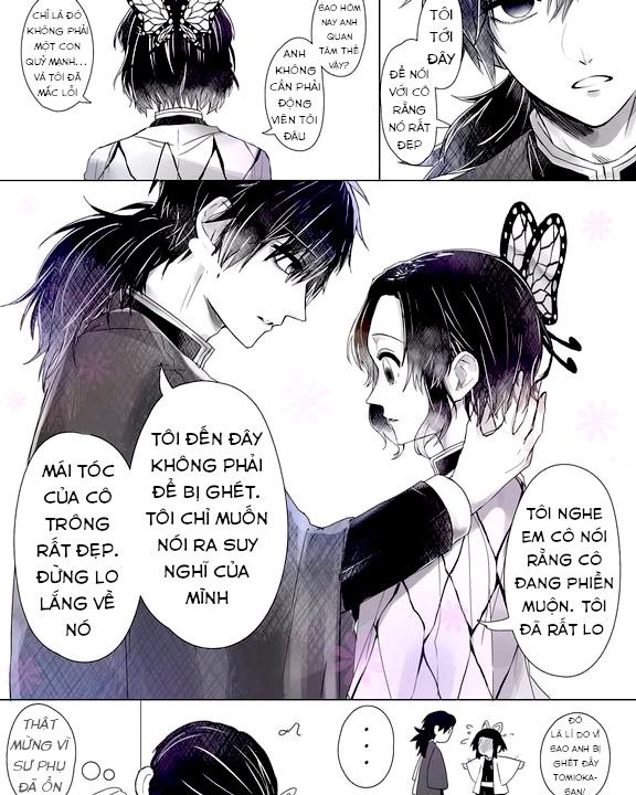 Giải thích chút: ý của Shinobu-san là cô đã bất cẩn để cho con quỷ tấn công mình. Với một Trụ cột thì đây là một điều khá là khó chấp nhận với họ. Xét về mặt sức mạnh 1 con quỷ từ Hạ huyền Tam trờ xuống sẽ khó mà đấu solo với Trụ cột được. theo bối cảnh thì đây có lẽ chỉ đơn thuần là một đêm tuần tra mà thôi. Shinobu vốn đã tự ti về sức mạnh cơ bắp nay càng thêm dằn vặt bản thân mình vì đã bất cẩn để một con quỷ hạng trung xén mất tóc của mình (thương chị). Tôi không biết Kanao đã viết gì trong thư nhưng tôi đoán anh Dũng chỉ đơn thuần nghĩ chị Điệp buồn phiền vì mái tóc (chán anh lắm :)))))) ). Nhưng thật may sự hiện diện và lời nói của anh đã làm vơi bớt cái nặng nề trong lòng Shinobu-san - người đang chìm đắm trong dằn vặt và phẫn uất