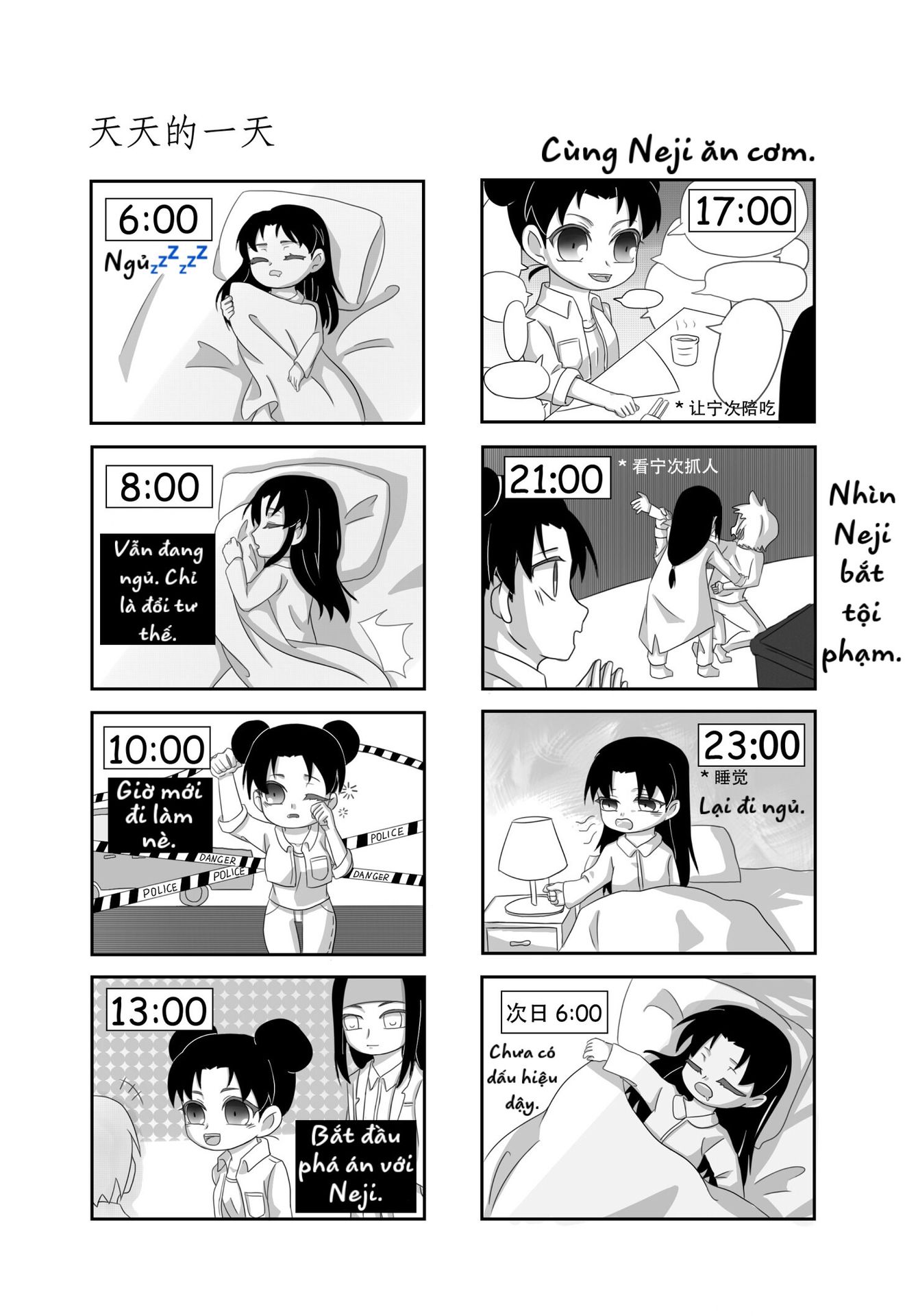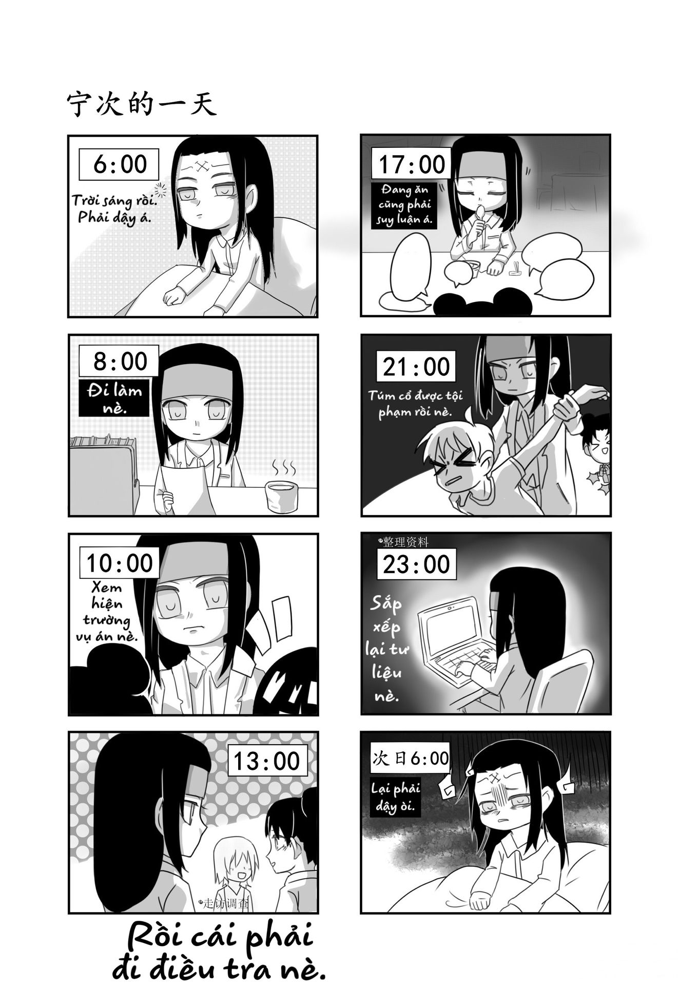 Từ đây có thể suy ra: Vị cảnh sát nào đó phải làm việc quần quật chỉ để nuôi cô trợ lý nhỏ thích ngủ nướng.