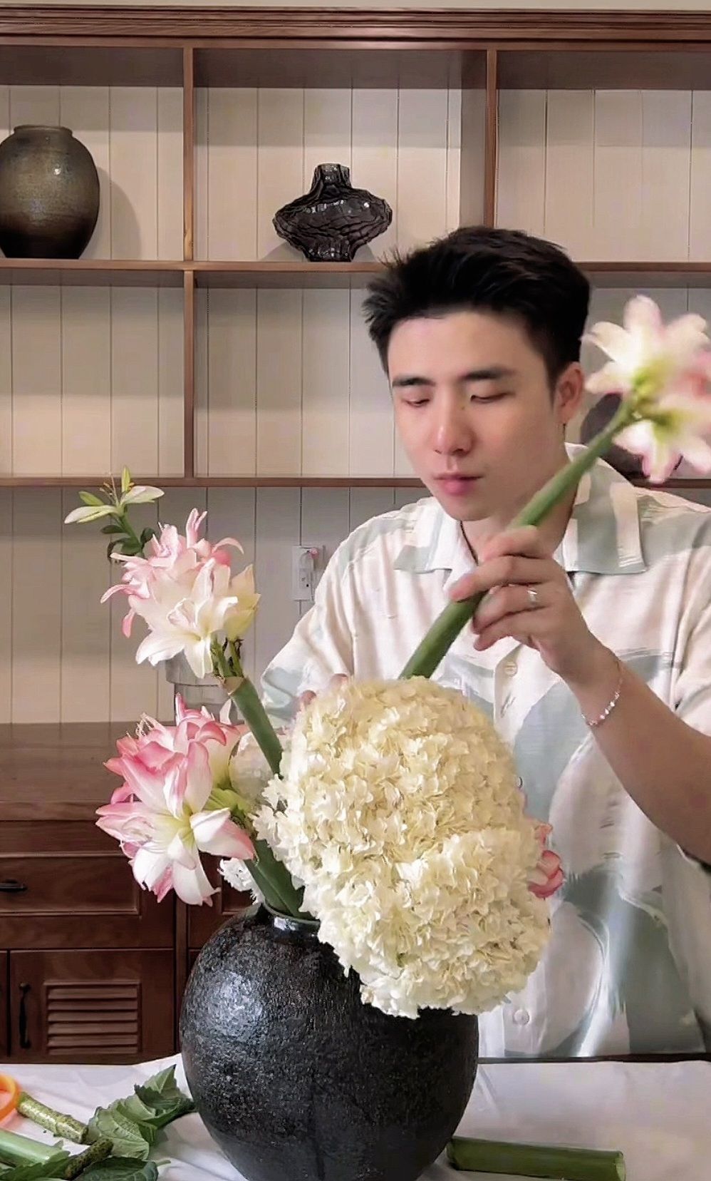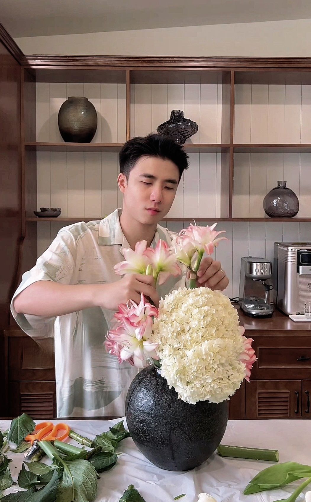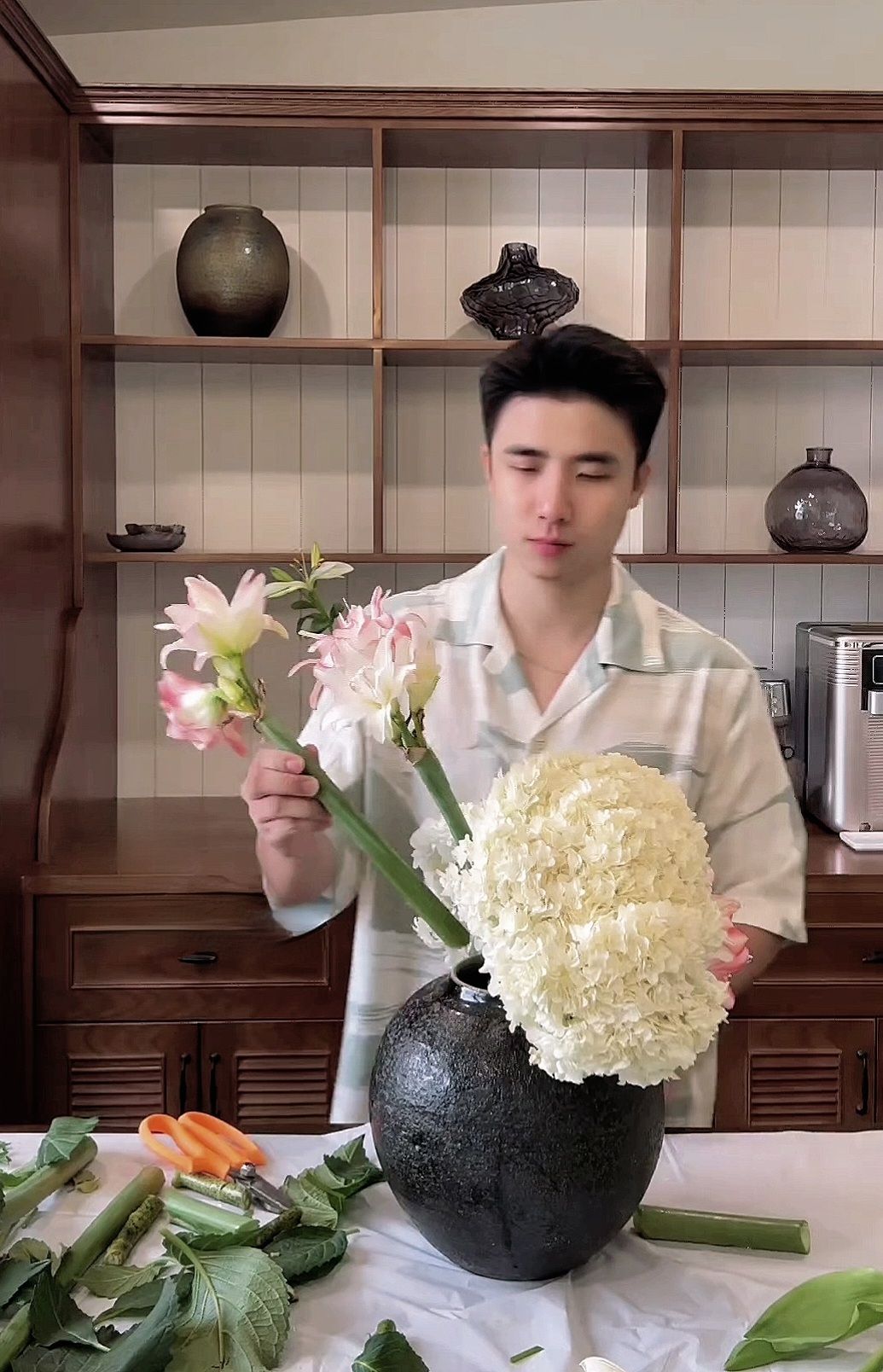 "Bạn Dương biết cắm hoa hả?"