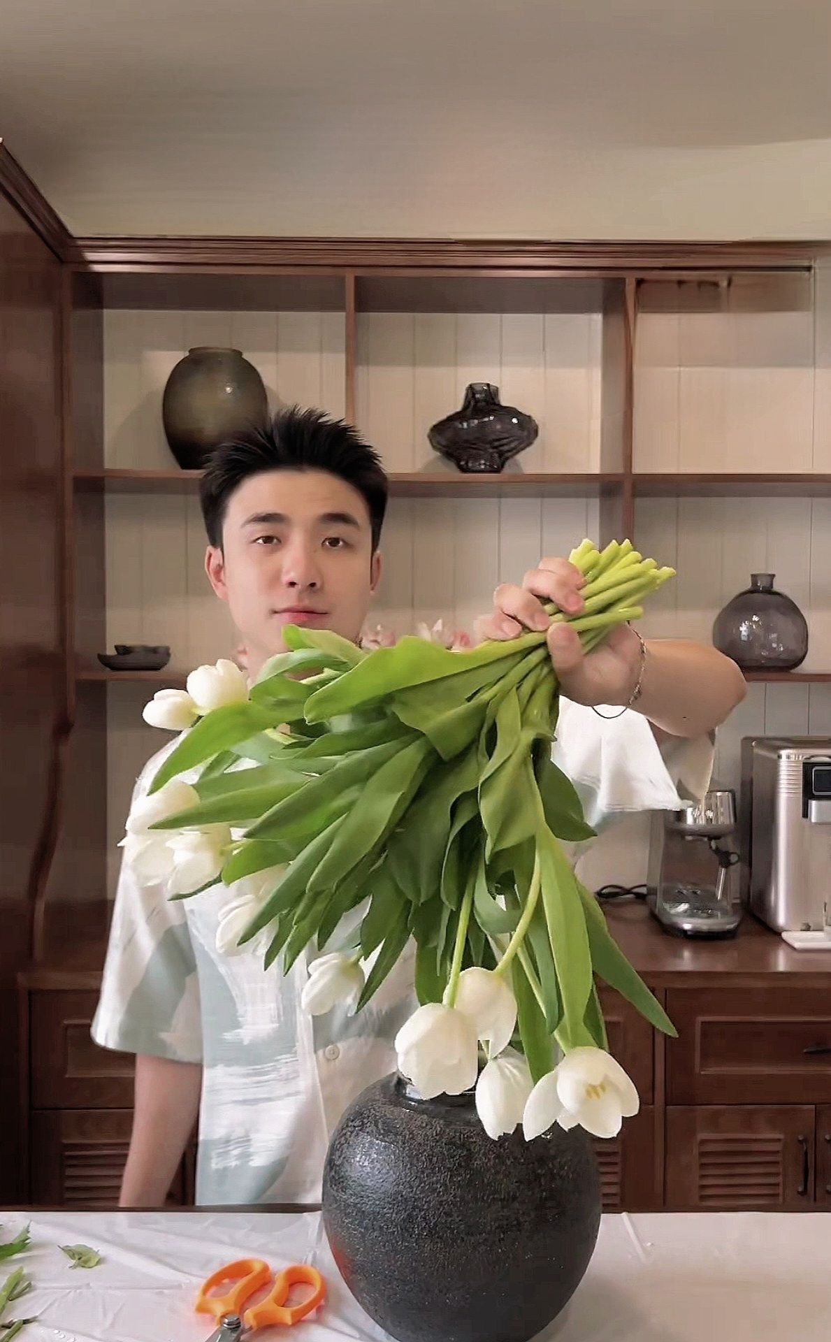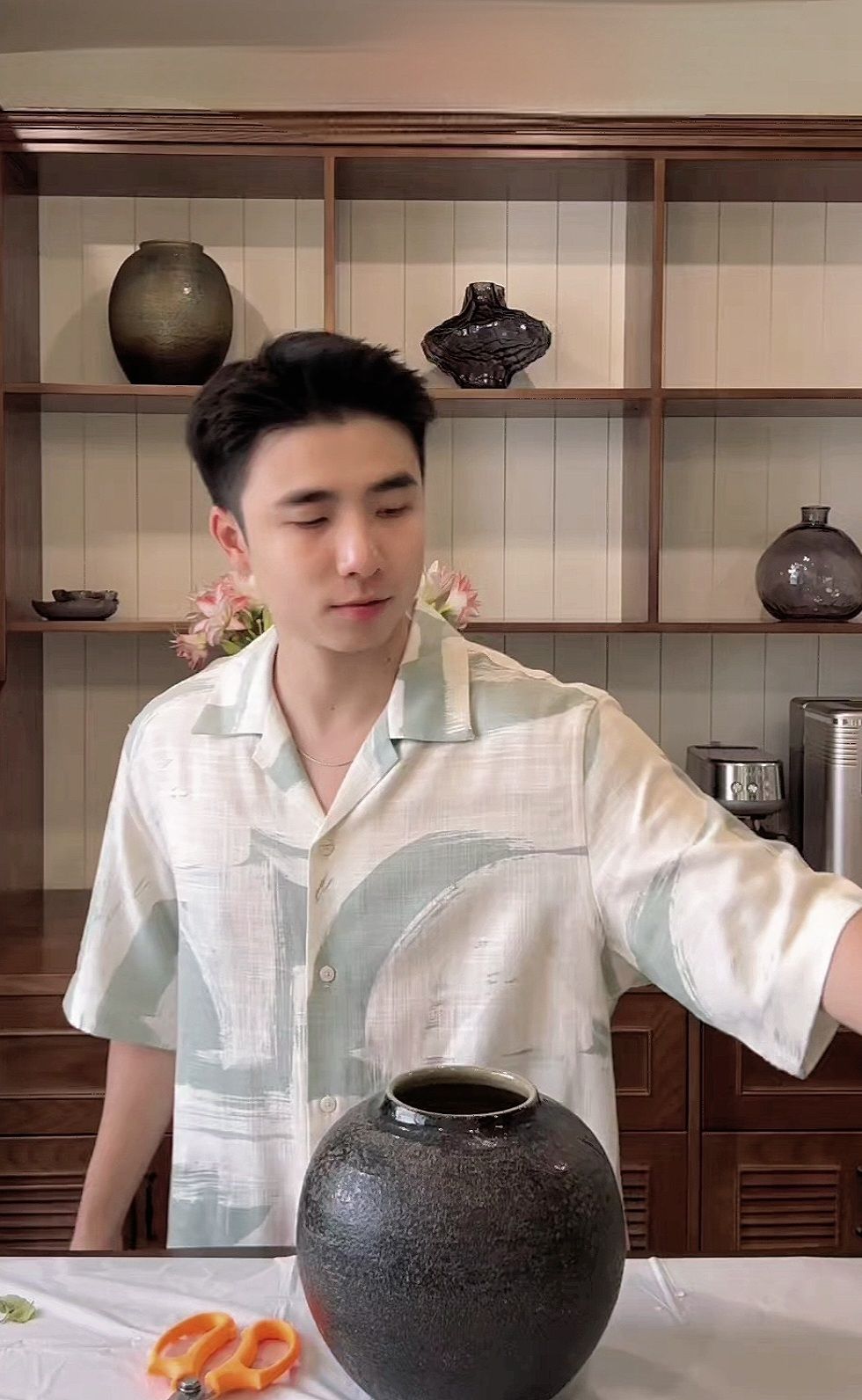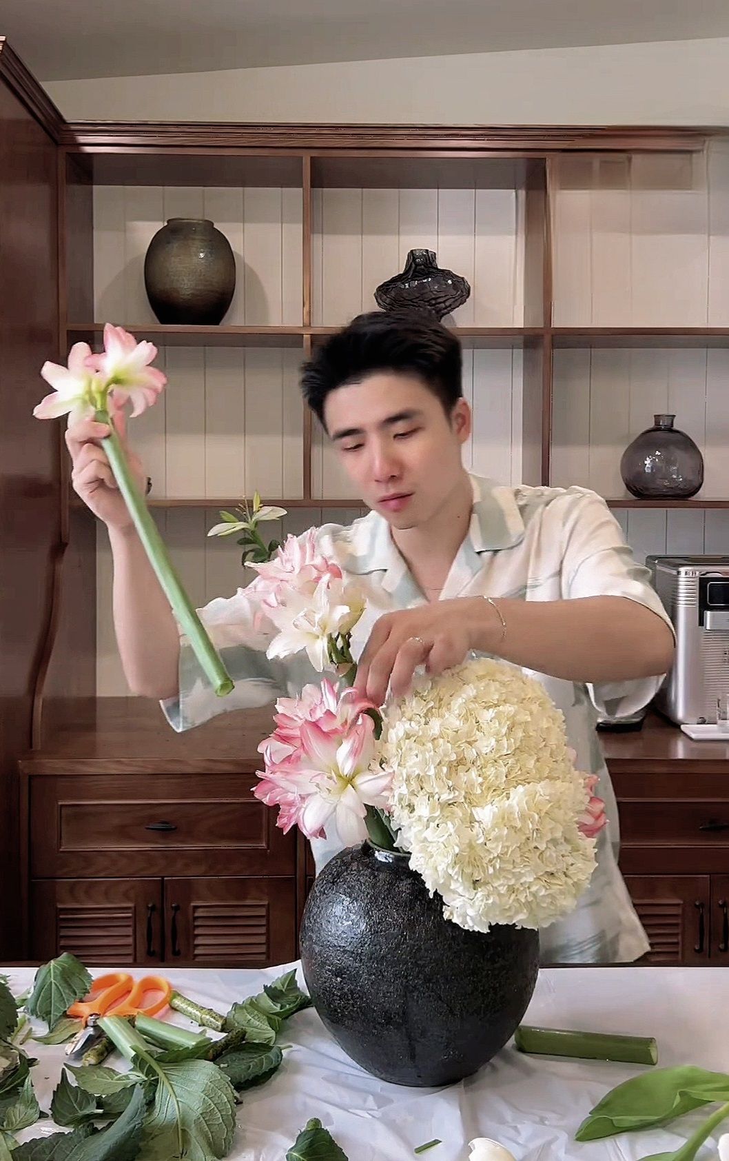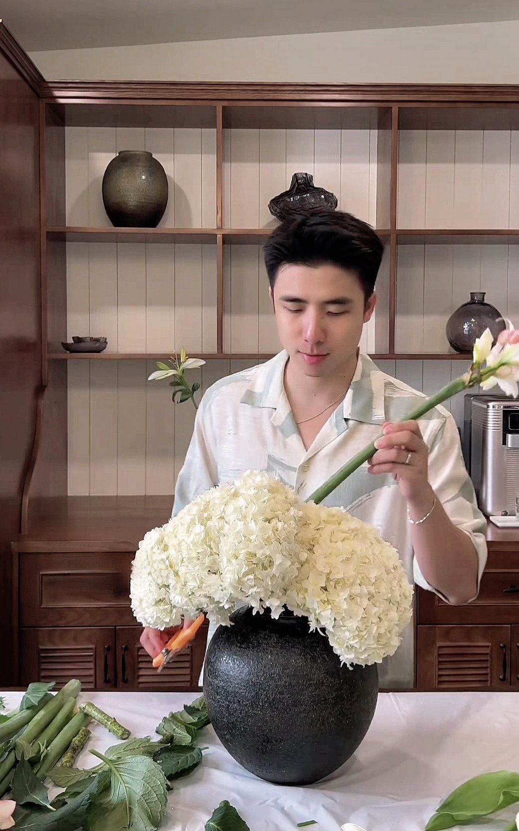 "Bạn Dương biết cắm hoa hả?"