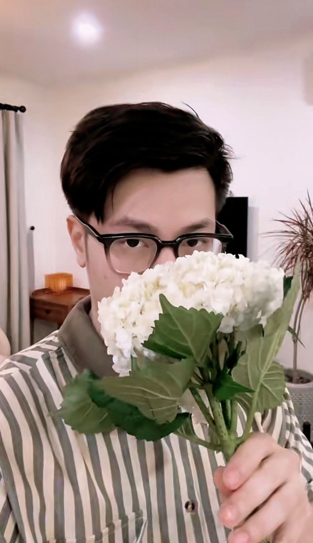 Dương cắm hoa, còn Ninh thì cứ ngắm "hoa" miết.