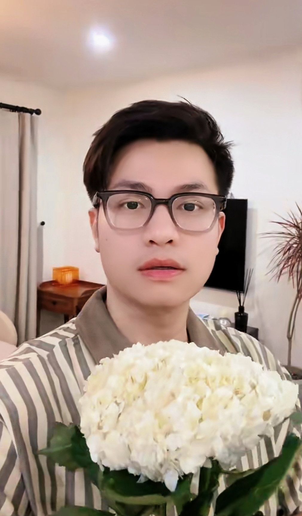 "Dương ơi Ninh không biết cắm hoa này. Dương dạy Ninh được không?"