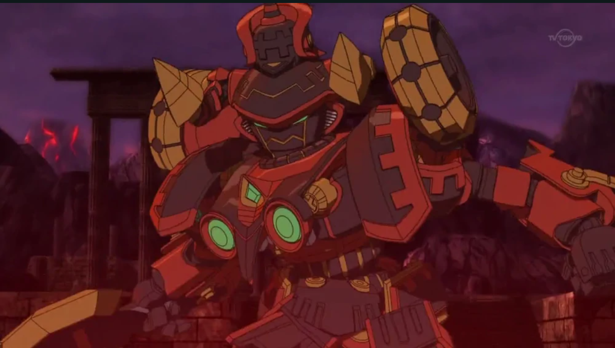 Ngọn giáo 2 đầu của con Robot khổng lồ bất ngờ phát sáng, tạo thành 1 mũi giáo năng lượng khổng lồ và ném về phía Desper và Jinrai.