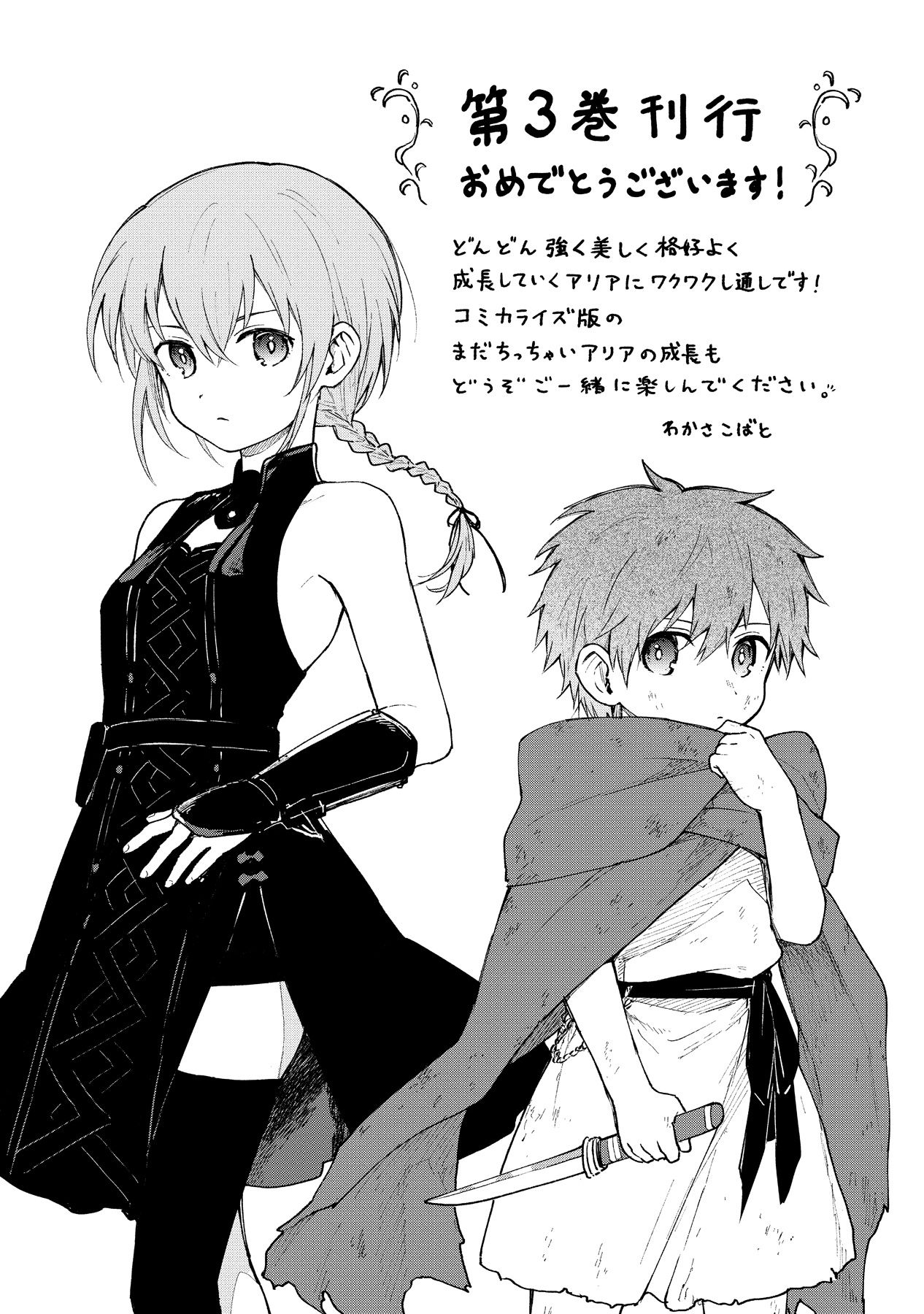 Nhân tiện, để kỷ niệm tập ba ra mắt, tập một của phiên bản truyện tranh do Wakasa Kobato-sensei chấp bút cũng sẽ được phát hành cùng lúc! Nếu bạn tình cờ đọc phần lời bạt này trước khi mua sách, hãy ghé qua khu truyện tranh và xem thử nhé!