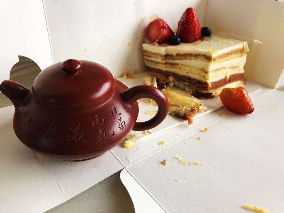 Vốn chỉ muốn chụp một mình, nàng phản đối nên ta chụp cùng bánh ngọt. yen