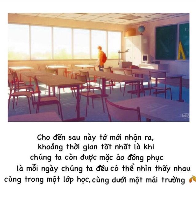 49. Cho đến sau này tớ mới nhận ra, khoảng thời gian tốt nhất là khi chúng ta còn được mặc áo đồng phục là mỗi ngày chúng ta đều có thể nhìn thấy nhau cùng trong một lớp học, cùng dưới một mái trường.
