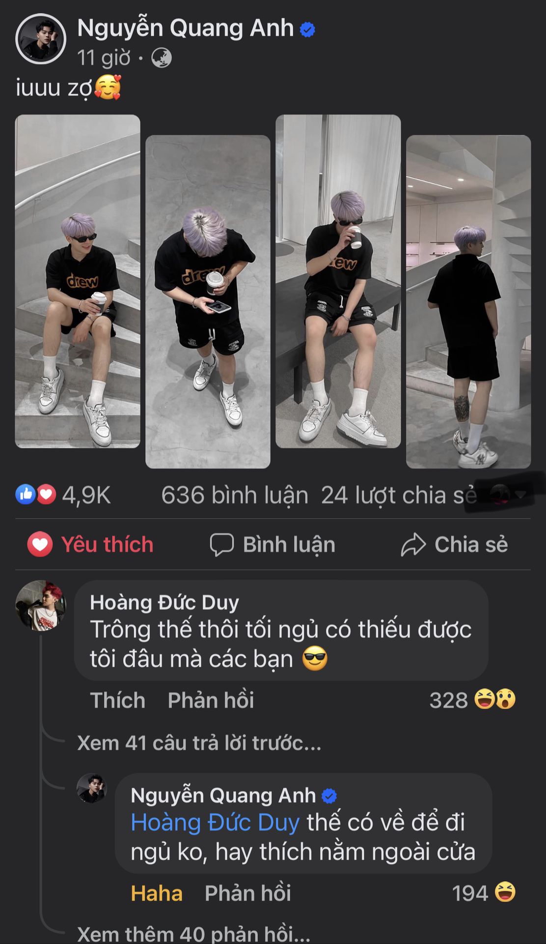 Nhìn anh bé Q.A nhắn như kiểu bé người yêu bị bồ bỏ ở nhà một mình nguyên ngày xong nhớ quá nửa đêm đòi bồ về liền vậy đó tr oiiii lại còn tin nhắn ở trên thì làm nũng tới lúc ngta rep "đây" thì thái độ anh lớn như kiểu"đây? Dạ em đây chứ? Nhỏ hơn anh 2 tuổi mà cọc lóc vậy hả?" z đó tr oiiiiii
