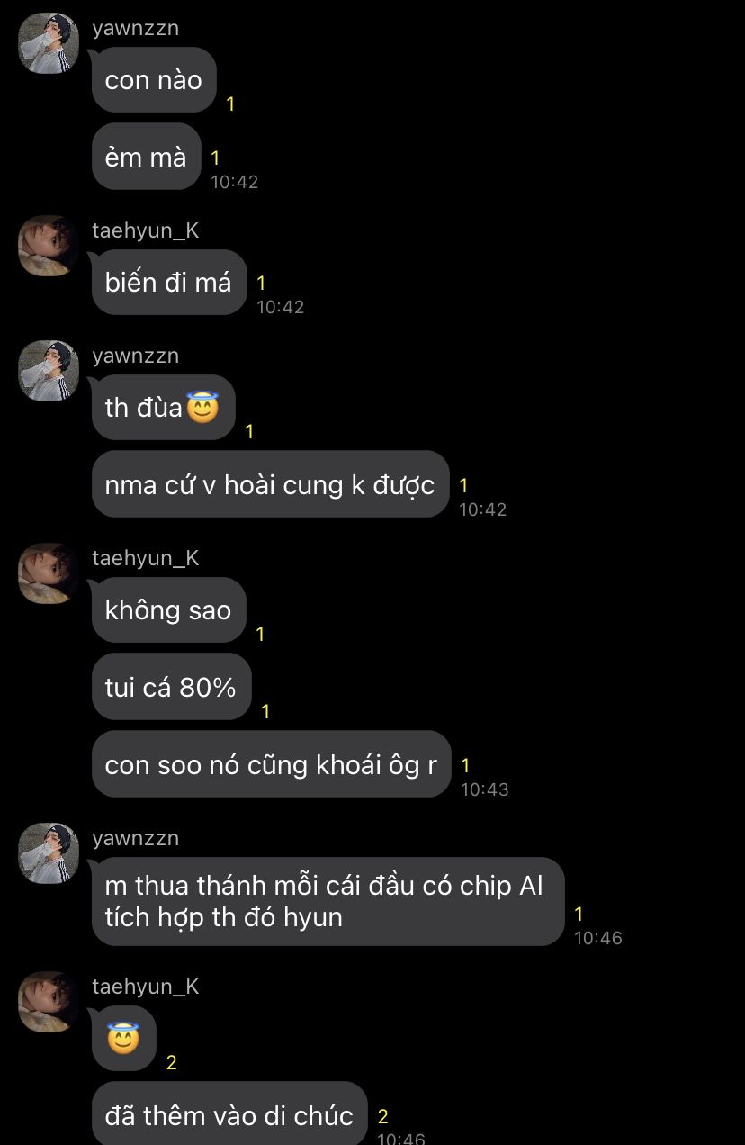 Dù biết là không đúng nhưng anh vẫn bất giác nghiêng đầu nhìn, vô tình thấy tên người nhắn ở trên đầu đoạn chat