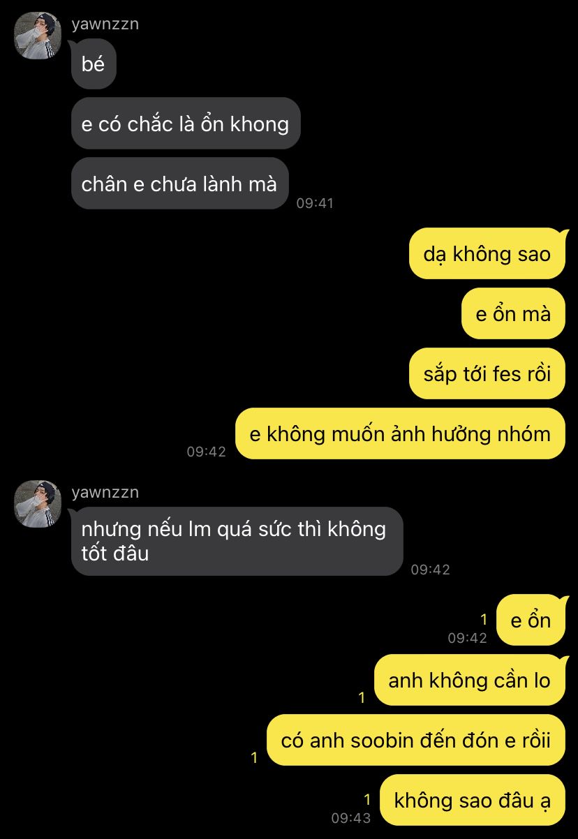 - Em.. Thôi cứ để em đi cùng anh soobin ạ, nhà anh ấy gần em hơn
