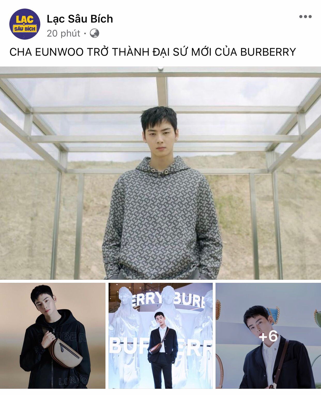 À các cậu ạ, buồn cười lắm! Lúc mình còn đang viết dở truyện, muốn nghỉ tay một chút nên đã chuyển qua fb xem có gì hot không thì Cha Eunwoo hiện lên như để dằn mặt mình thế này này =)))))