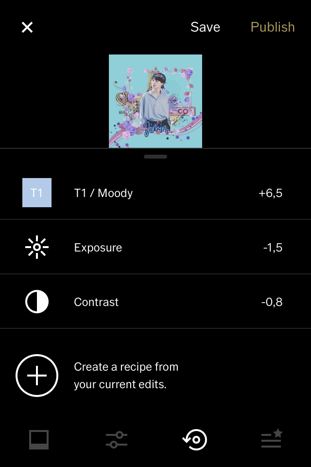 Bước 7: Vào VSCO, chọn dấu + rồi thêm ảnh vừa rồi. Chọn ảnh đó rồi ấn đâu 3 chấm. Tiếp theo chỉnh sửa các filter tuỳ ý, nên chọn tone màu "xanh dương" hoặc màu "trắng sáng"