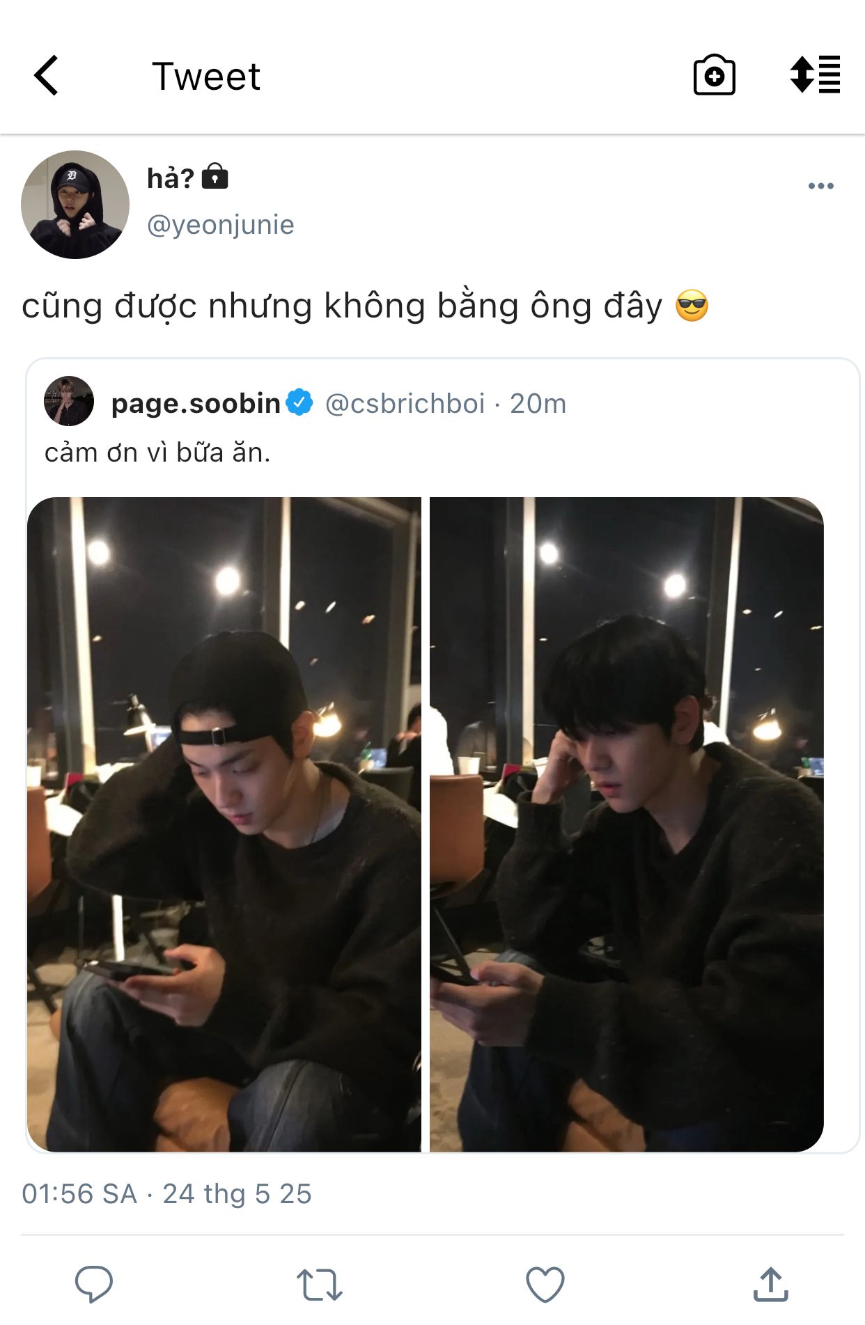 không rõ lắm nhưng anh chắc chắn một điều, đấy chính là beomgyu và huening kai rủ nhau chụp dìm anh rồi cùng nhau up. tệ thật, hình tượng bấy lâu nay anh xây dựng cuối cùng cũng sụp đổ chỉ vì anh lỡ ham vui mà uống quá chén để rồi quậy hết người này đến người kia, anh không nghĩ tửu lượng của mình lại có giới hạn đến vậy.