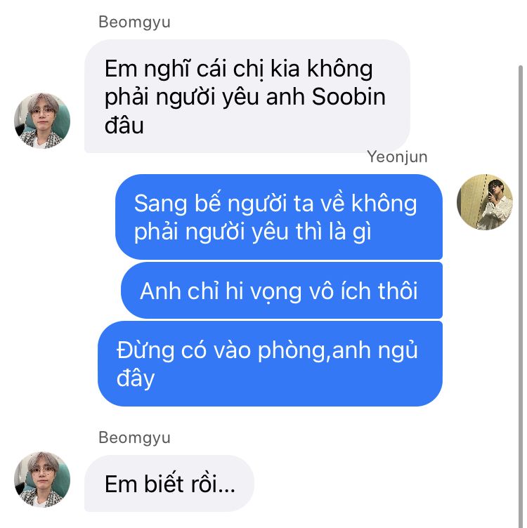 Cảm giác tủi thân trực trào trong lòng Yeonjun. Anh không nhịn được liền lớn tiếng.