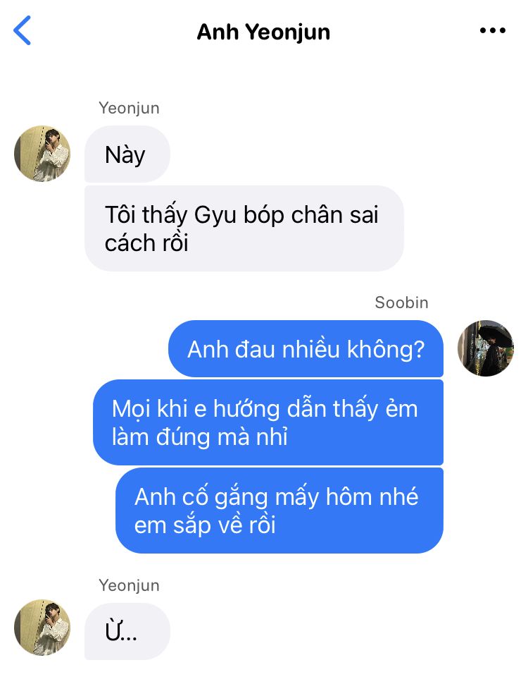 "Anh sao thế? Chân đau quá ạ?" Soobin vội chạy lại xem qua chân anh.