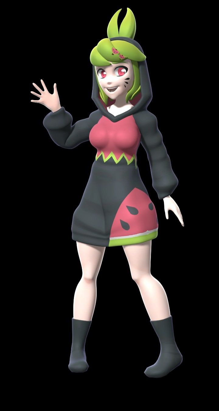 ????: Hi I'm Melony, a human female watermelon who loves to sleep and loves the cute things. It's my pleasure to meet you two *she was making a cute face while looking at both of them with excited*