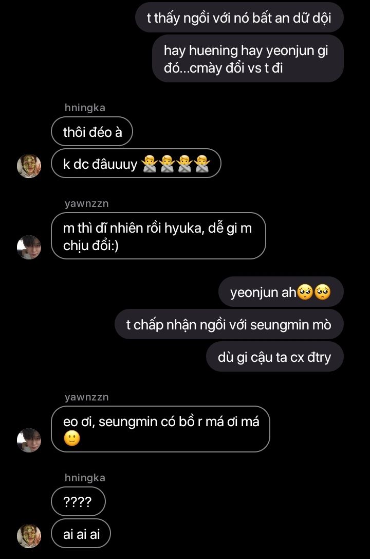 "trời ơiiii, mày có thấy hyunjin và sunghoon nó im re không???? tha tao đi!!"