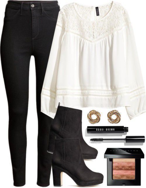 Lizzie was wearing a sweater with a pant and some booots.