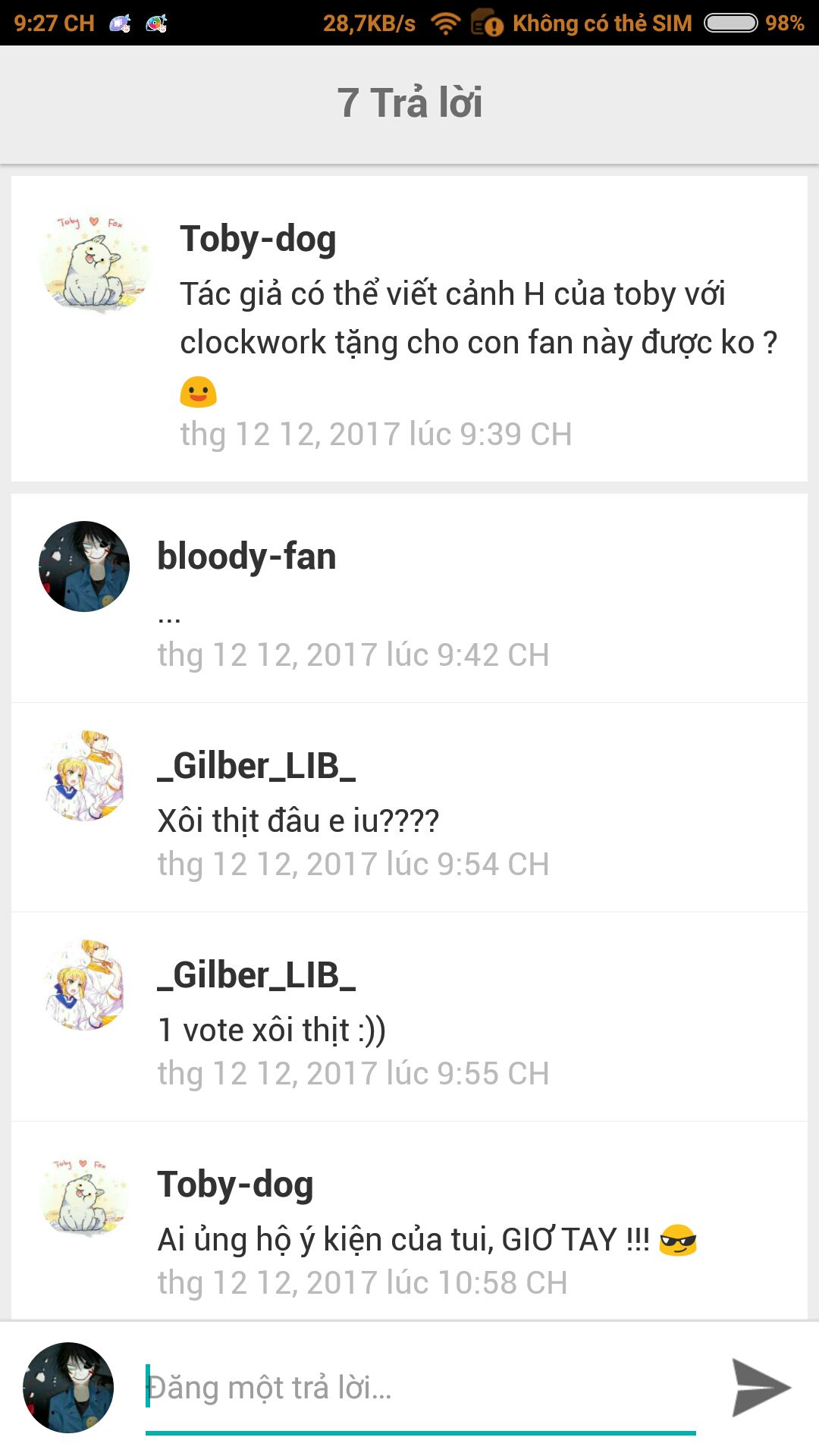 Bây giờ Toby đang phải hết sức kiềm chế mình lại,cố gắng lấy giọng bình thường nhất để hỏi Clockwork: