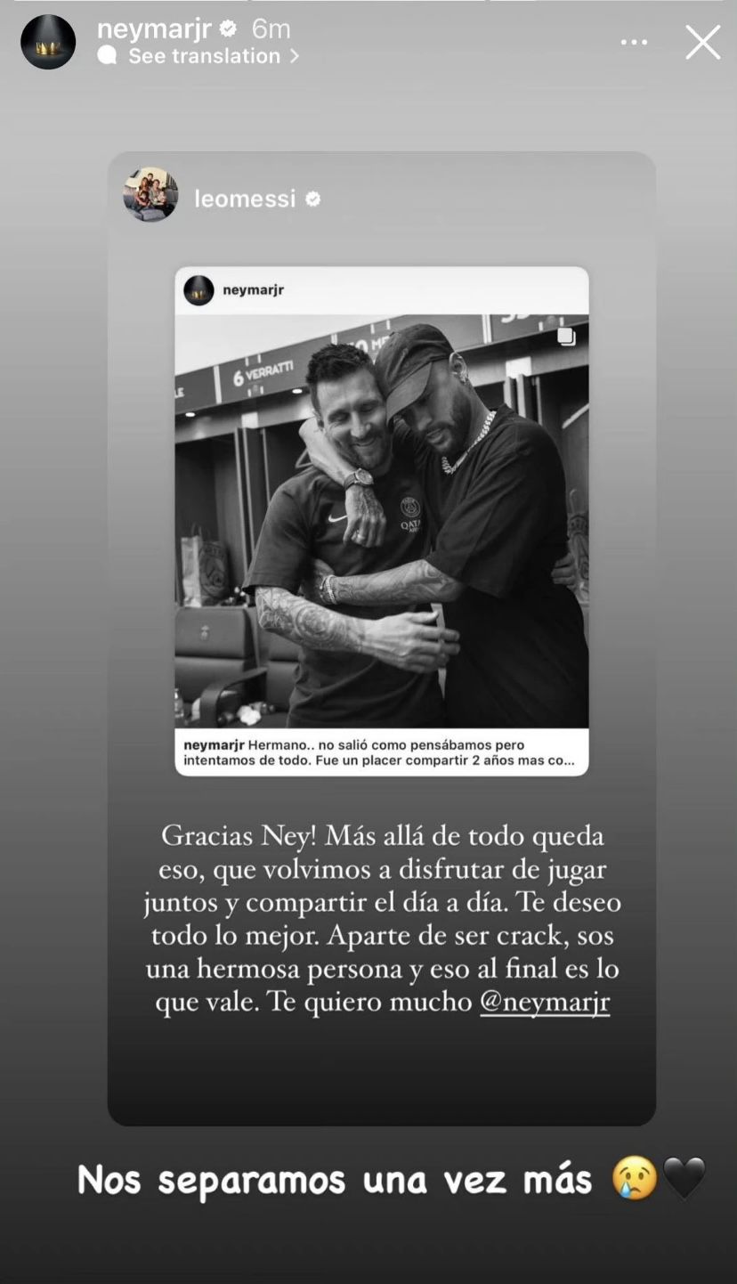 Neymar giật mình ngẩng đầu lên, nhưng ngay lập tức bị ánh mắt ngây thơ chân thành của Messi đánh bại, cậu tiếp tục ủ rũ cụp đầu xuống.