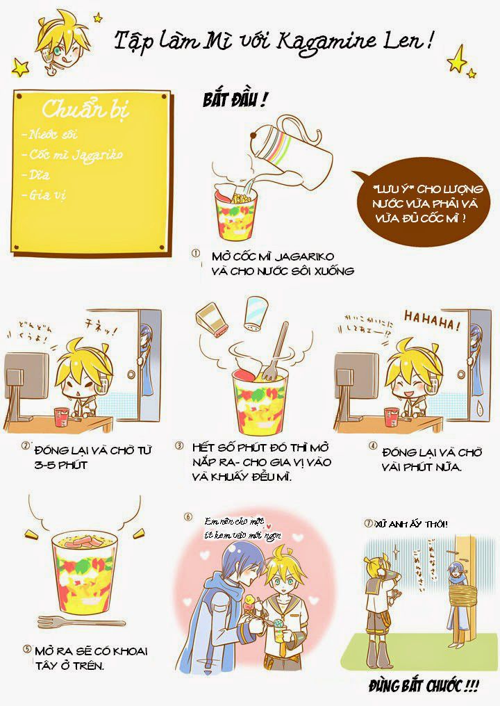 Nếu những bạn nào ko biết nấu ăn thì hãy đọc qua cách nấu mì đơn giản chỉ có 7 bước của Kagamine Len nhé
