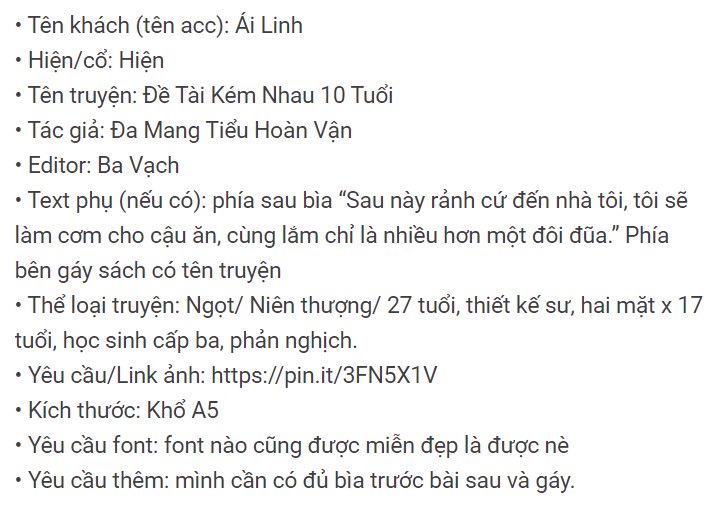- Sử dụng bìa ít nhất một tuần và ghi rõ "Book cover by Túy Gia".