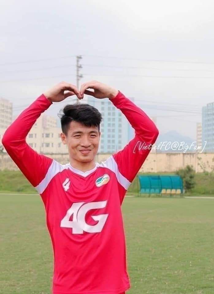 Tiến Dũng đặt điện thoại lên phía kệ làm tay hình Trái tym, bên kia màn hình là nụ cười hạnh phúc của Đình Trọng.